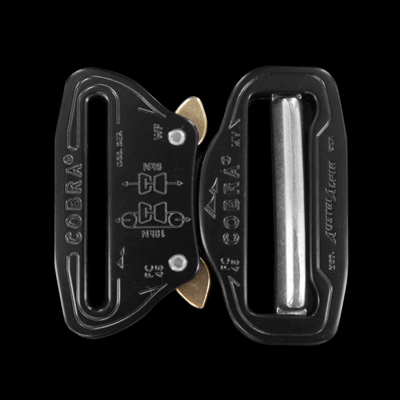Thanks to the identical locking mechanism, all COBRA® PRO STYLE sizes are compatible. In combination with a fitting webbing, the minimum guaranteed load capacity is 18 kN in loop configuration. The COBRA® PRO STYLE is characterized itself by the high flexibility between the male and female parts while the buckle is closed.
