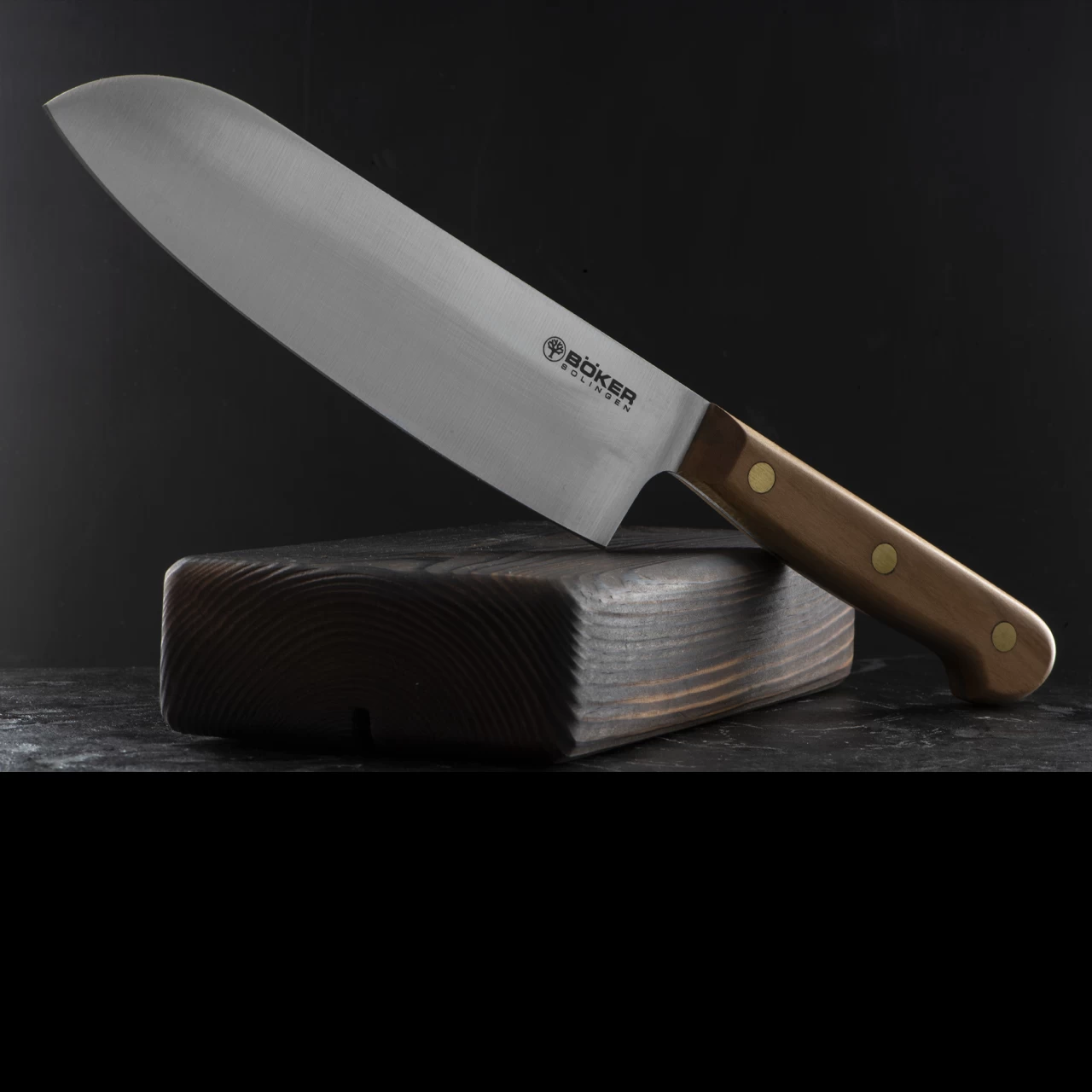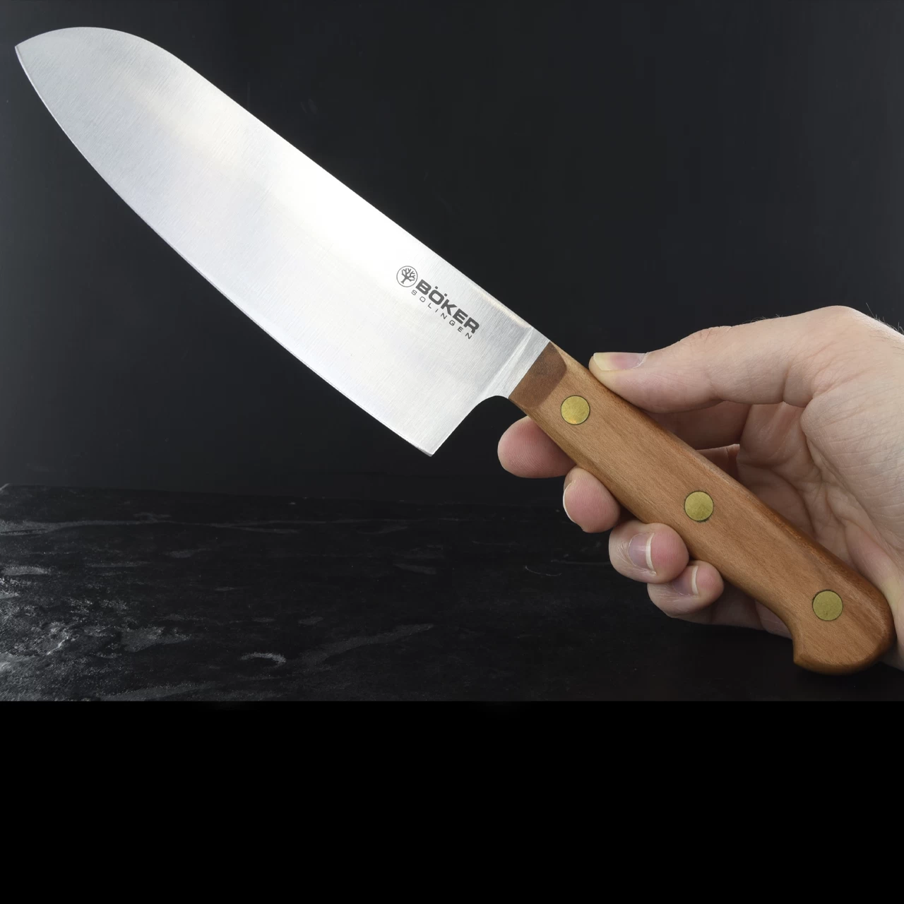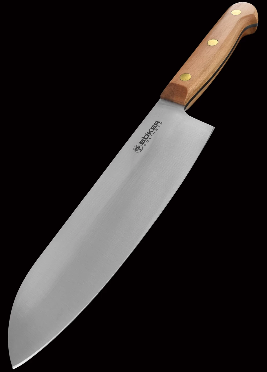 A knife that is also becoming increasingly popular in Europe is the Santoku. It is originally a Japanese blade shape for an all-purpose knife. Translated its name means “The three virtues”. The Boker Cottage-Craft Santoku it is equally suitable for meat, fish and vegetables. The wide blade makes the Santoku particularly easy to handle.