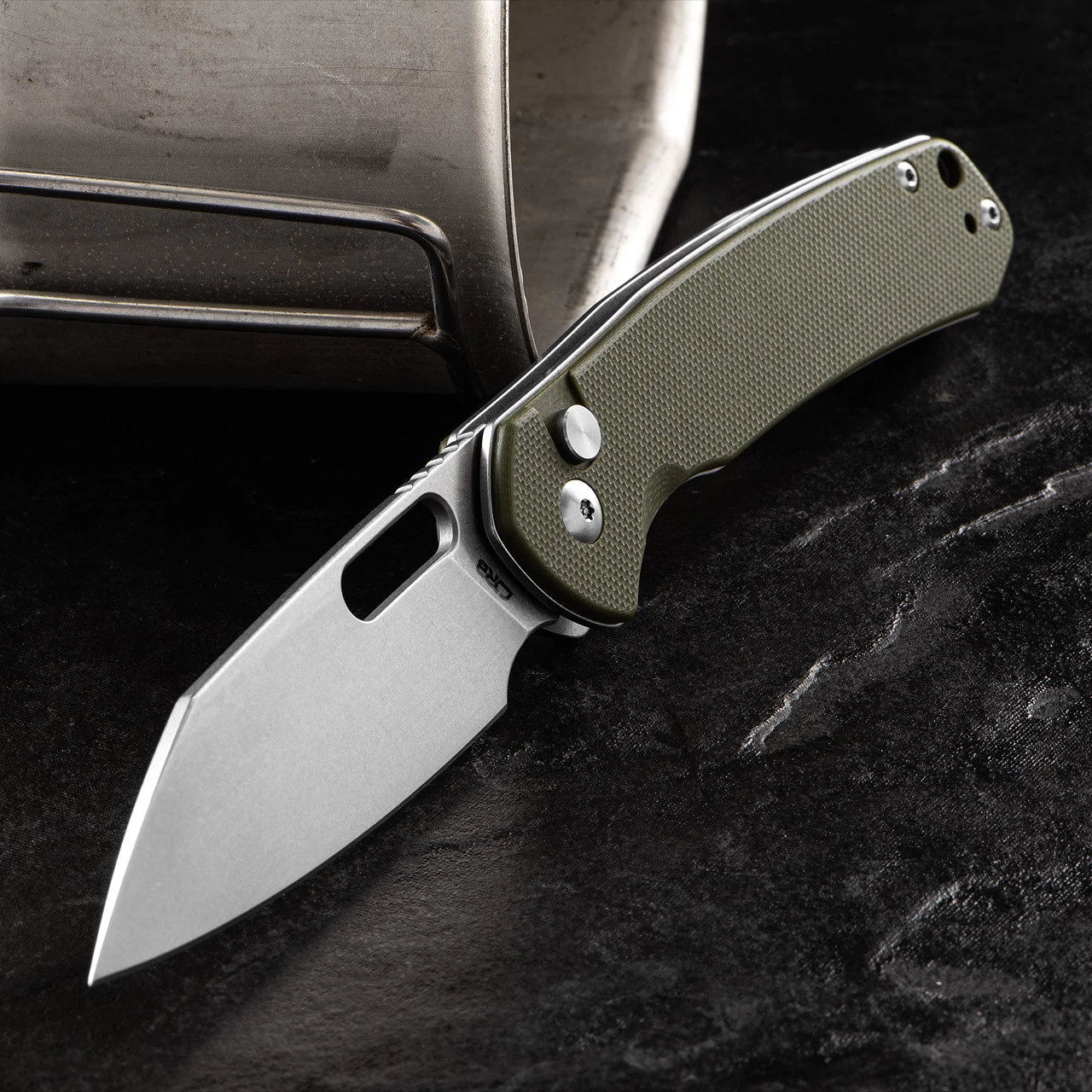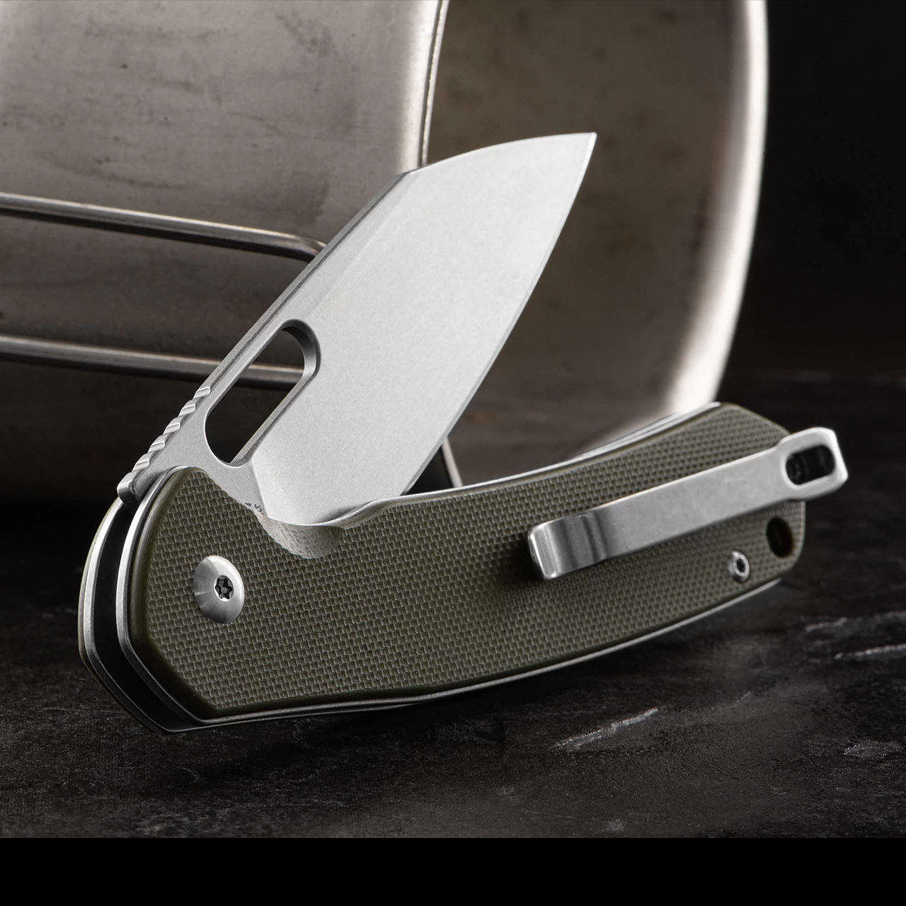 The handle is stainless steel with OD green G10 scales giving a streamlined and pleasing look. A removable pocket clip is attached and a lanyard hole allows a choice of carry options.