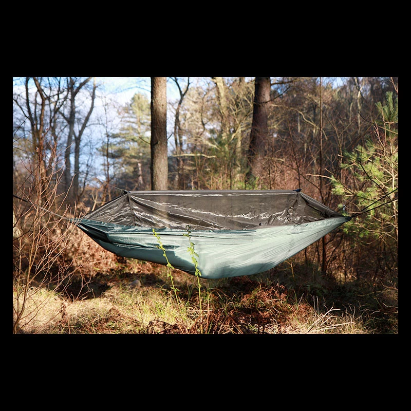 The double-layered DD Travel Hammock/Bivi has a built on mosquito net and a waterproof floor. With the webbing pre-fitted and spreader poles/elastic included to raise the net, the Travel Hammock is a versatile system suitable for users with any level of hammock camping experience.