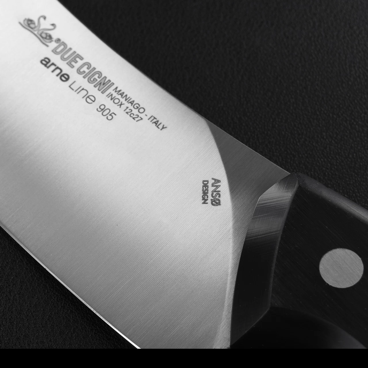 Designed by Jens Ansø the Due Cigni Carving Knife features HPL (High Pressure Laminate) handle scales which are not only comfortable to use but dish washer safe. The satin finished blade is razor sharp to the tip and heat treated to keep a long lasting edge. It’s a Carving knife a steak knife that will last forever.