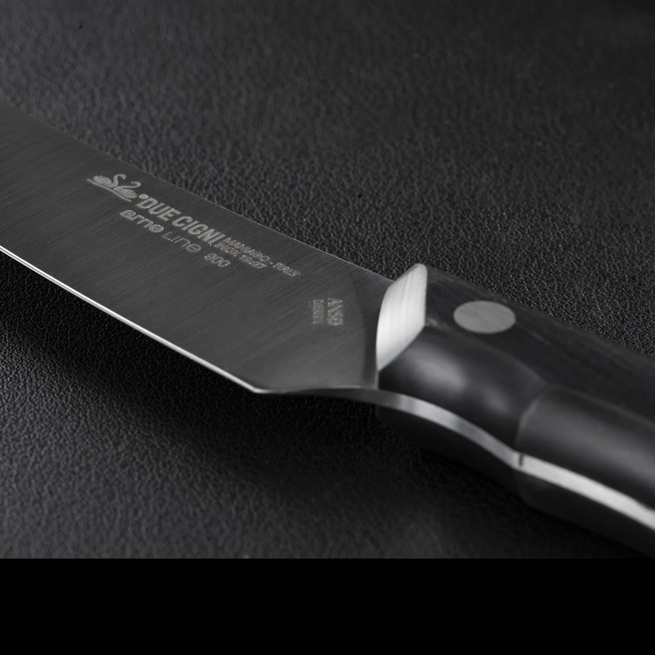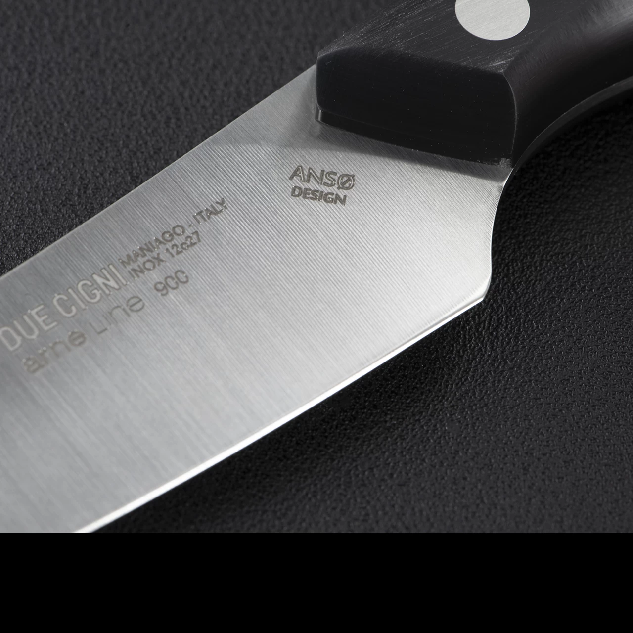 Designed by Jens Ansø the Due Cigni Steak Knife features HPL (High Pressure Laminate) handle scales which are not only comfortable to use but dishwasher safe. The satin finished blade is razor sharp to the tip and heat treated to keep a long lasting edge. It’s a kitchen knife a steak knife that will last forever.