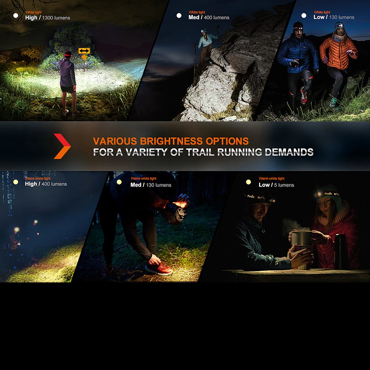 Adaptable to your needs, both beams offer three brightness settings: enjoy up to 24 hours of 130-lumen clarity or 12 hours at a brighter 400 lumens, ensuring you’re never left in the dark.