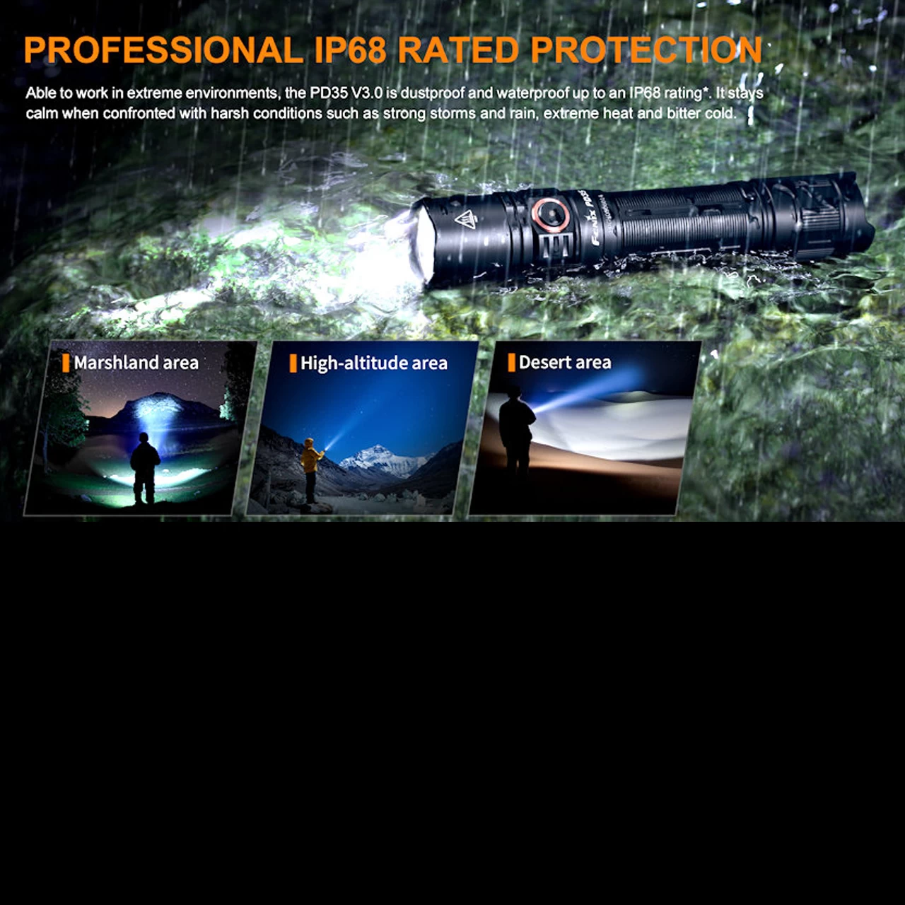 The Fenix PD35 V3.0 is the upgraded small light cannon in the classic and hugely popular PD35 line. With an impressive maximum output increased from 1,000 to 1,700 lumens over the previous model and incredible build quality, Fenix PD35 V3.0 LED torch offers tremendous lighting performance in a compact, lightweight body that’s easy to carry every day.