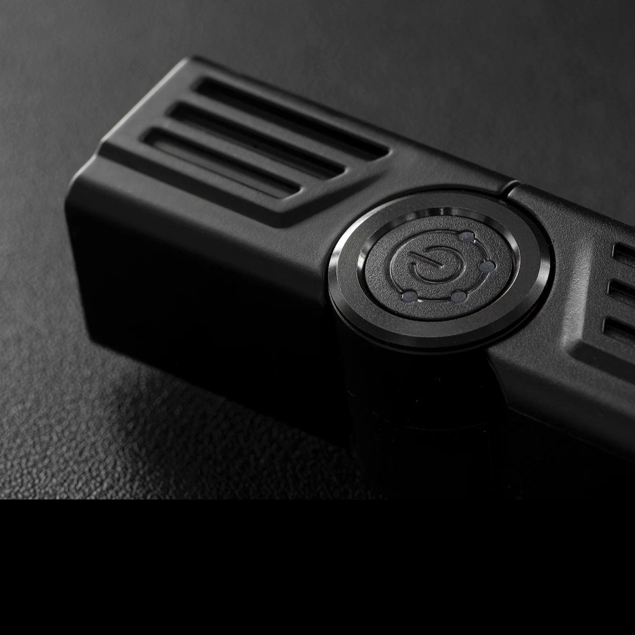 A perfectly positioned, comfortable to operate side button in the neck of the light (with built-in remaining power and charging indicators) controls all brightness levels whilst a handy memory mode means the light is always re activated at the last used output level for convenient operation.