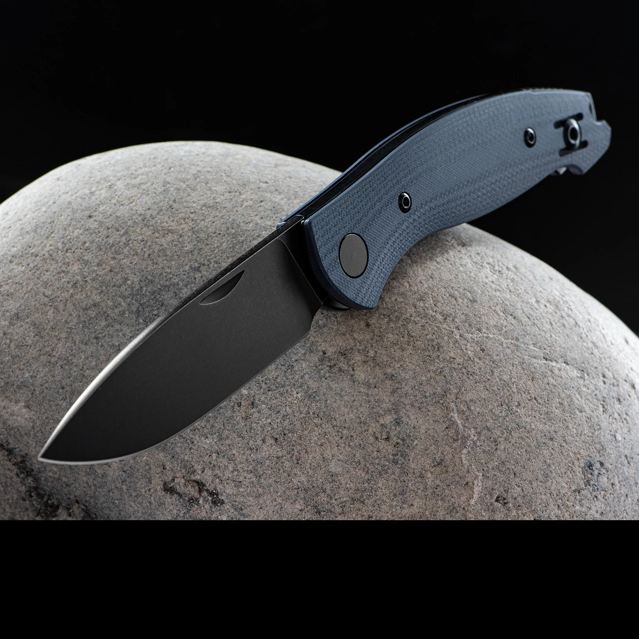 Apparently, “the colour blue represents winter, ice, water, freshness, rain, and wind.” Well, GiantMouse chose the dusk-blue G10 scales for this PVD version of the Farley because they simply thought it was “cool” in the other sense of the word. Â This colour is just wicked cool! And the matching dark PVD M390 blade and black hardware gives this Farley a certain classiness or elegance that you’ll be proud to show off in the office or in the field.