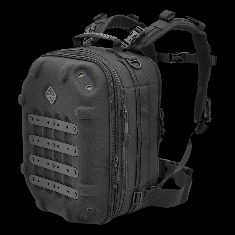 The compartments will fit smaller laptops, tablet, pro camera systems, drones like Mavic Pro, accessories like card-readers, and personal items like snacks, rain shell, or first aid kit that are often not allotted on most packs. The molded back-pad is abrasion resistant while conforming to the spine and ventilating sweat. The top shell has 4 spots for the patented Hardpoint parts allowing optional attachment of loops, lights, bungee systems, molle panels etc.