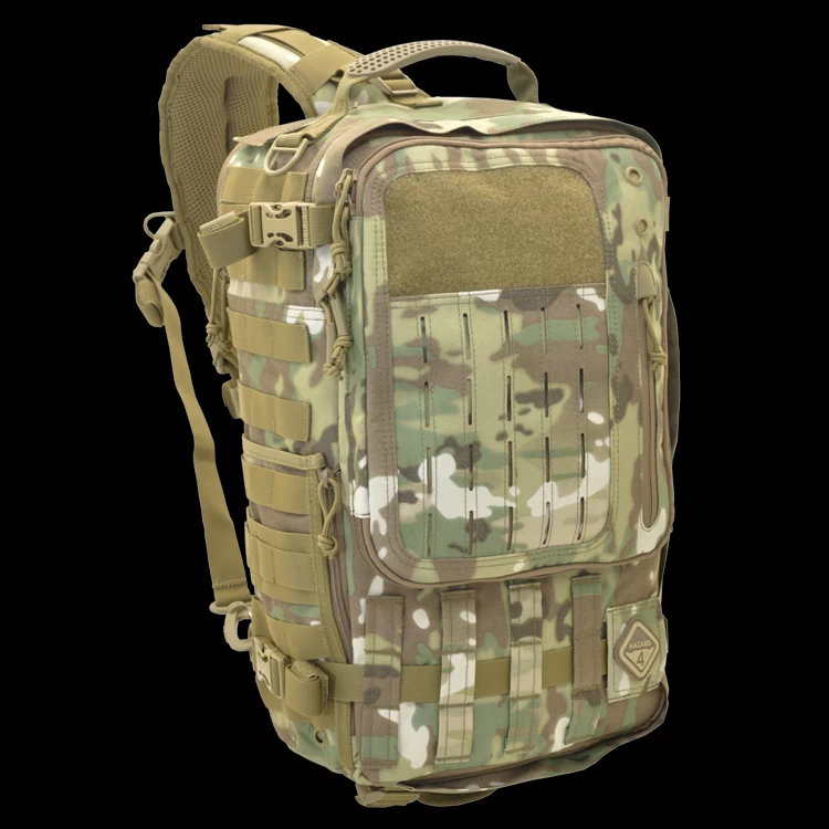 A drop-down fast access gear organizer can also hold an iPad sized tablet like a shelf and the main compartment is lined in hook&loop-like fuzz for attaching dividers, patches or Hazard 4 holsters.