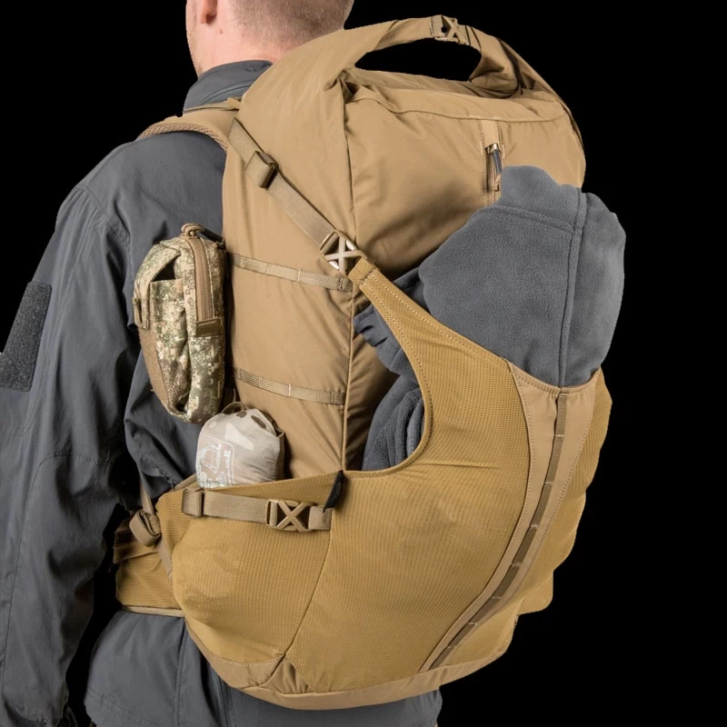 The Helikon-Tex SUMMIT Backpack is the answer for all modern hiking needs. The pack is a combination of lightweight, durable fabrics with comfortable, packable construction. The pack itself has been stripped of all unnecessary additions that would have negative influence on the weight. The spacious main compartment has two access points – one via the rolltop collar and second via front, vertical zipper.