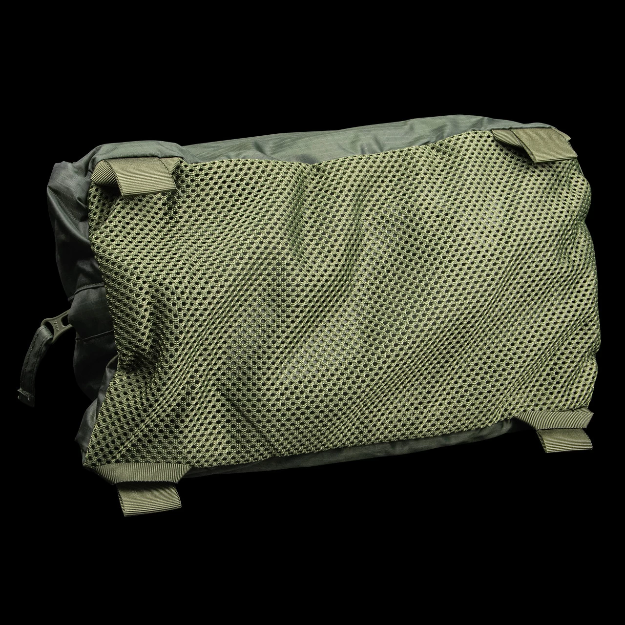 - Two covers enclosed: a drawstring bag and zippered sleeve with mesh bottom for drying, attached to the backpack via nine webbing bands