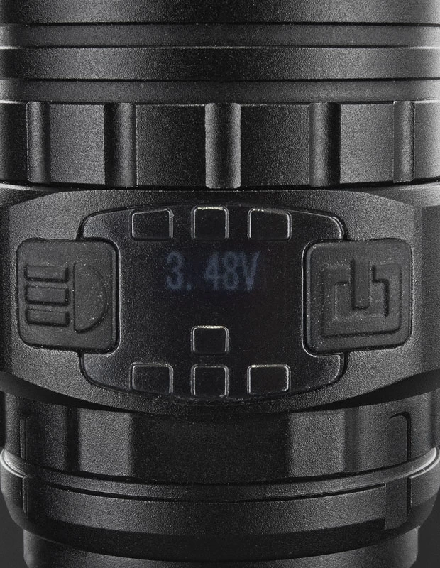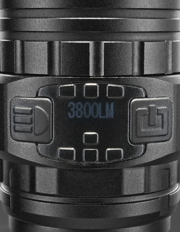 It is a versatile USB rechargeable LED tactical flashlight with multi-level output and an OLED display. The OLED display shows battery voltage, output, charging, and has a flashing overheat warning, which makes it much easier and more simple to know the current status of the flashlight during use.