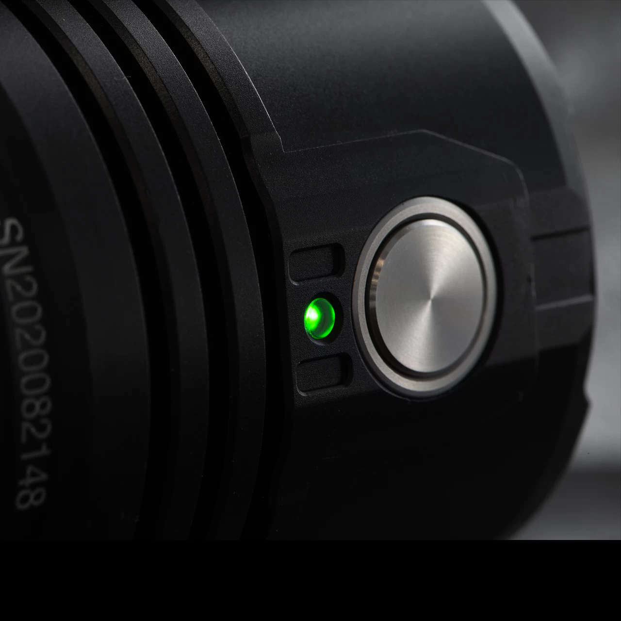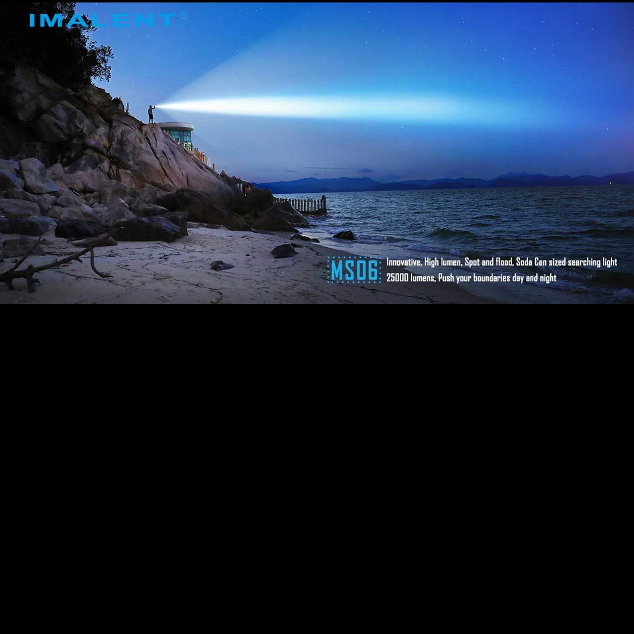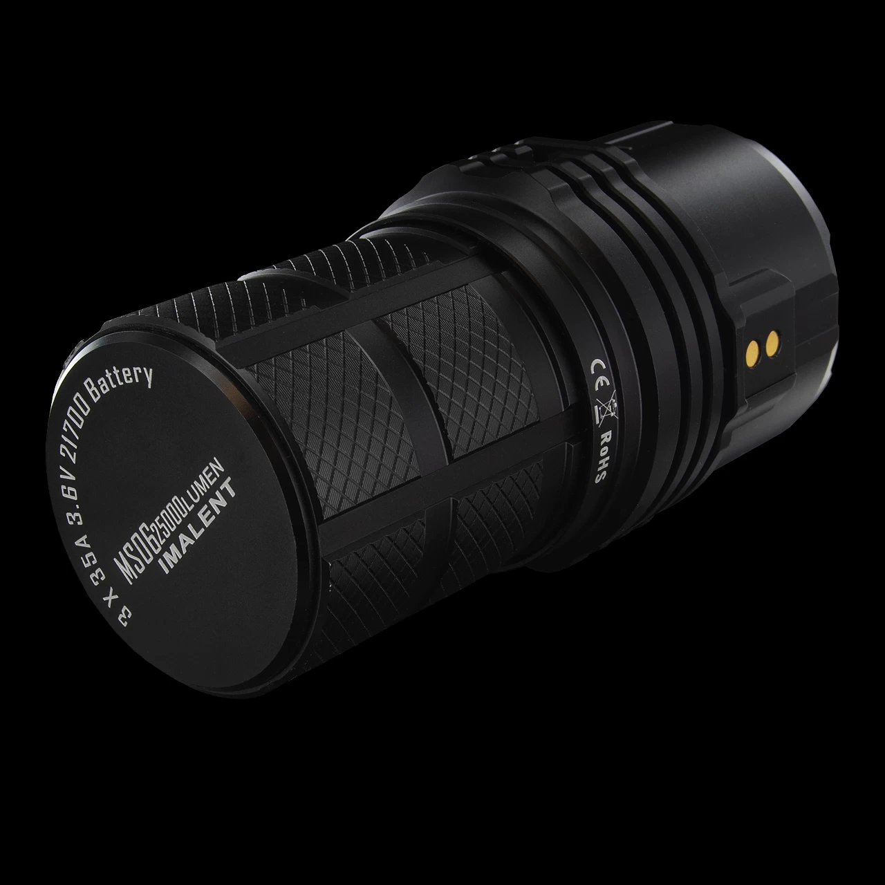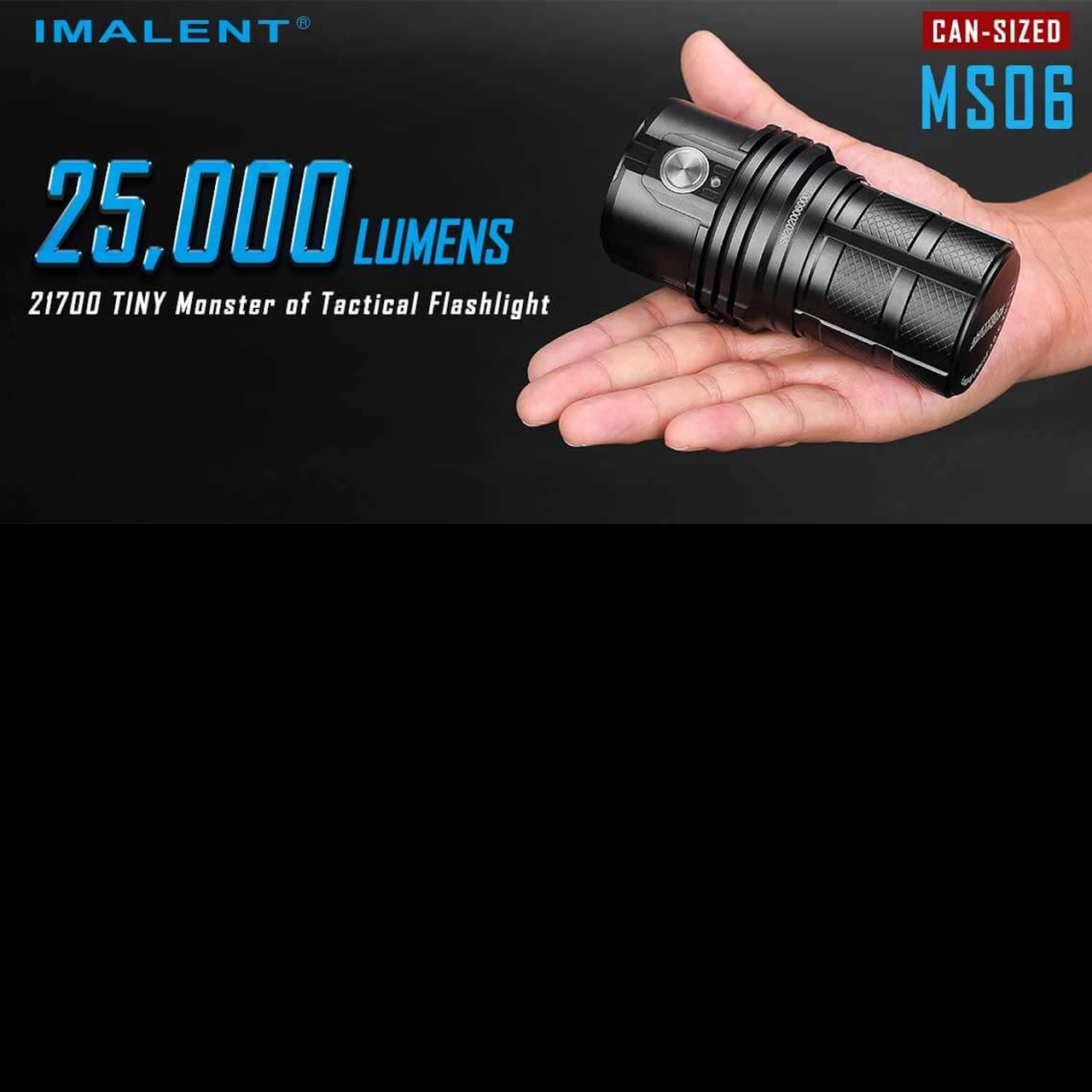 This 25,000 lumen flashlight can be quickly charged with the three included 4000 mAh 21700 Li-ion power batteries via the magnetic USB port. The amount of light that the IMALENT MS06 flashlight emits is truly remarkable. A wide beam angle and strobe function are perfectly suited for search and rescue work.