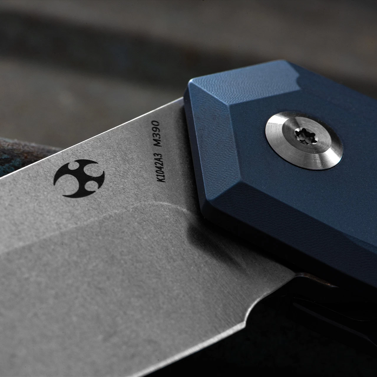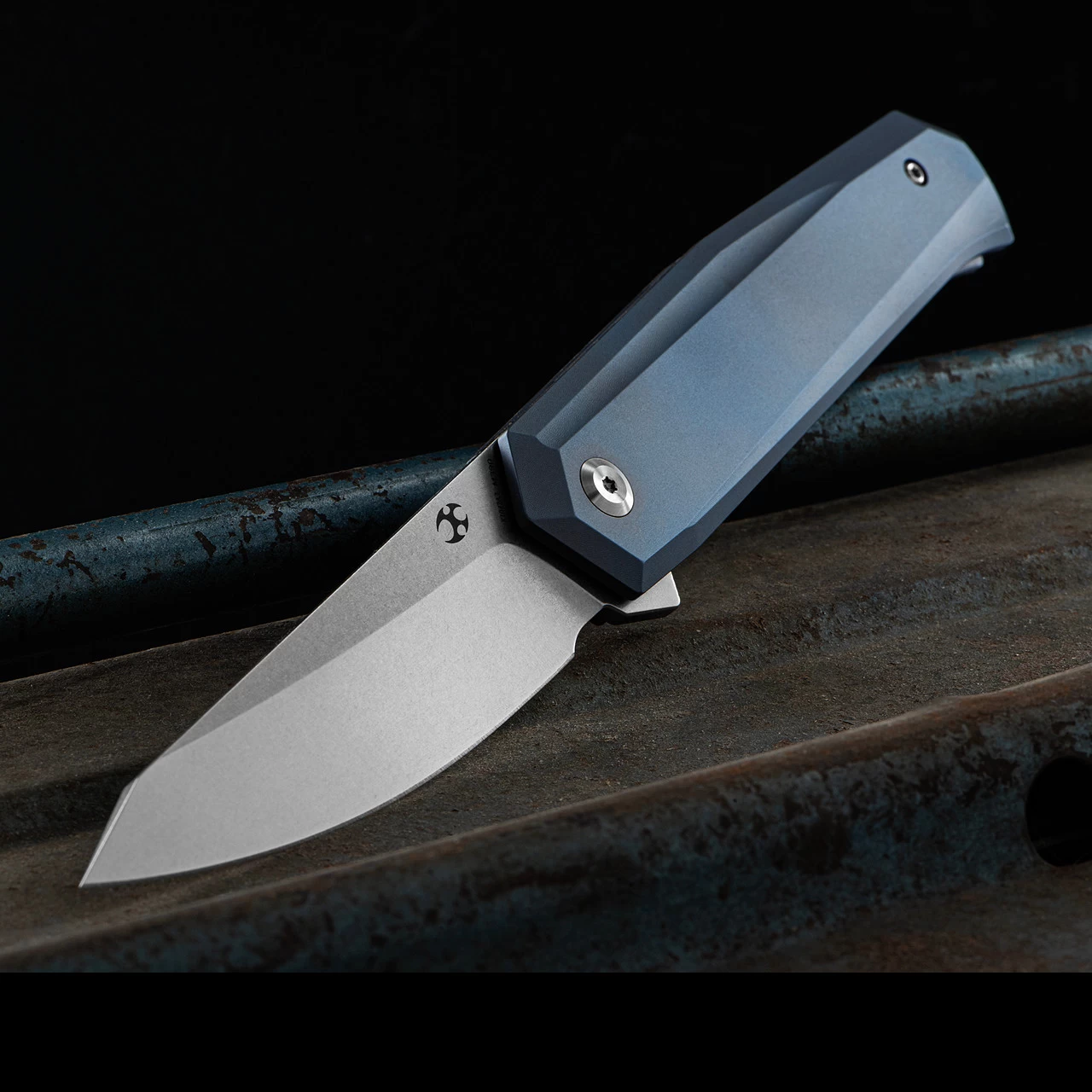 The Kansept Integra Titanium is a design by JK Knives in Poland. It is a streamlined, ergonomic design with an upswept reverse tanto blade which gives a generously sized cutting edge. The handle is made from Titanium in a choice of blue or bronze anodization and a rock solid frame lock cut into one side. Each one benefits from a similarly coloured pocket clip and an indented lanyard bar.