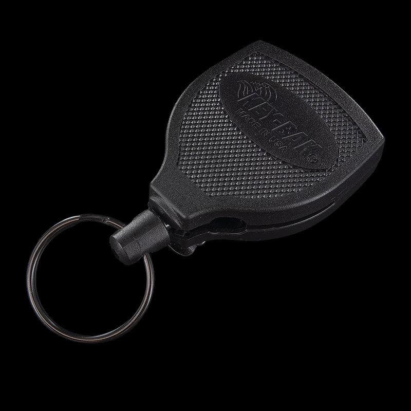 The Key-Bak Super 48 Plus Retractable Keychain was built for rugged use and hard work. The durable black polycarbonate case is impact resistant, and the retractable cord made with DuPont Kevlar fiber is guaranteed to outlast any other retractable key holders on the market. Attach your keys or small tools to the oversized split ring and secure the clip to your belt. When you need your keys just pull them out, when your done let them go and the built-in tether retracts back into place until you need them again. When you need a heavy duty key holder to secure a large number of keys, the SUPER48 Heavy Duty Retractable Keychain is your best choice.