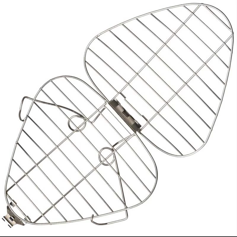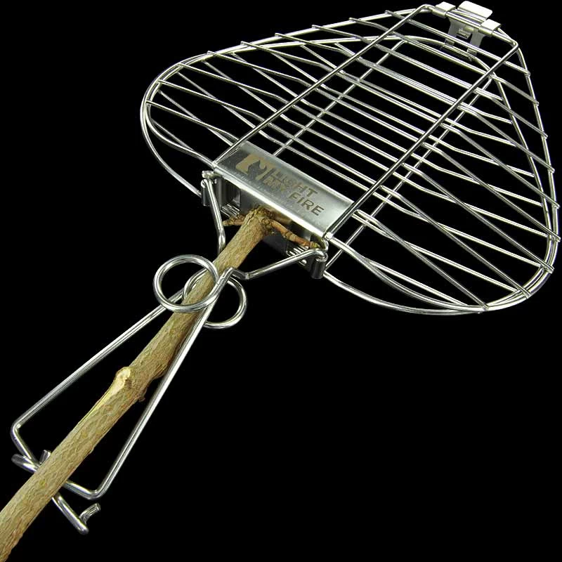 • The wire mechanism attaches the grill securely to a stick and it can be locked in place when folded out and used as a gridiron.