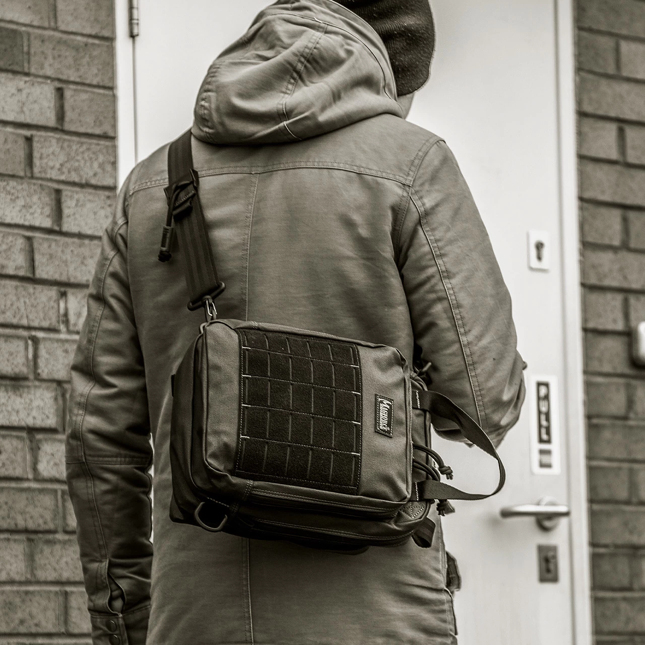 The Magforce Cougar is one of their smallest shoulder bags and perfect for light carry of vital and treasured EDC items. It is a tough little bag with 500 Denier nylon outer which is also waterproof. The diagonal wearing system and the removable straps mean that the bag can be worn on either side of the body with either side showing outwards. There are three substantial compartments.
