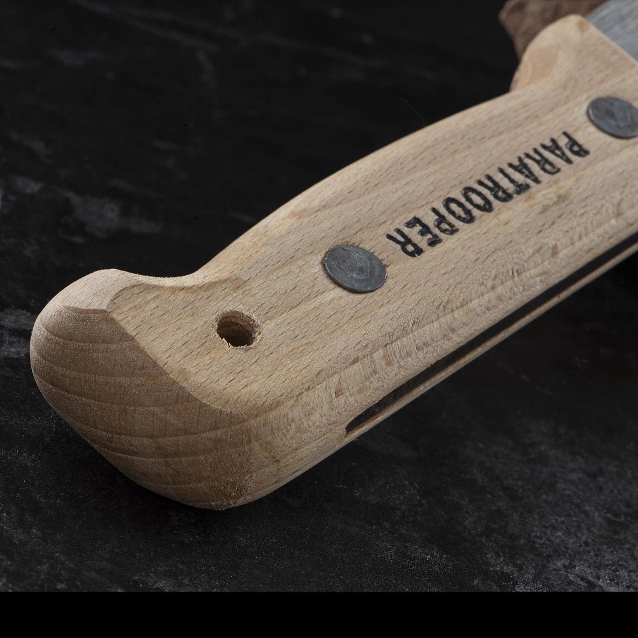 All Martindale handles are made from German beech wood. The moisture content of the timber is monitored to make sure the product is consistent and does not split under normal circumstances. The timber is cross-sawn for maximum strength and stability and the handle is fitted to the blade with solid steel rivets and washers.