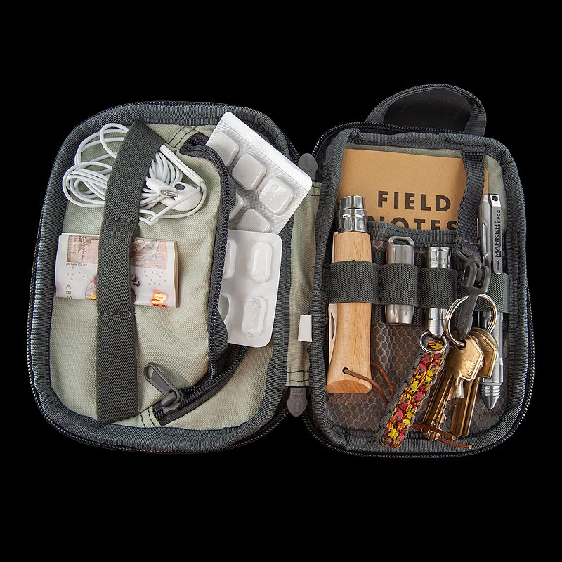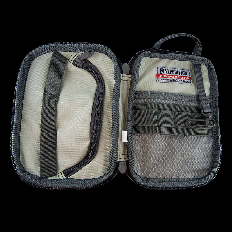 The Maxpedition AGR MRZ Mini Organiser v2.0 has extensive internal organization, including multiple pockets and elastic loops, a Keyper™ to clip your keys to and a grayscale interior with fray-resistant Gossamer™ mesh pockets. The MRZ v2.0 also has a contoured nylon composite carry handle designed for comfortable carry. It comes equipped with two TacTie® PJC3™ Polymer Joining Clips for modular attachment to any AGR or Legacy pack.