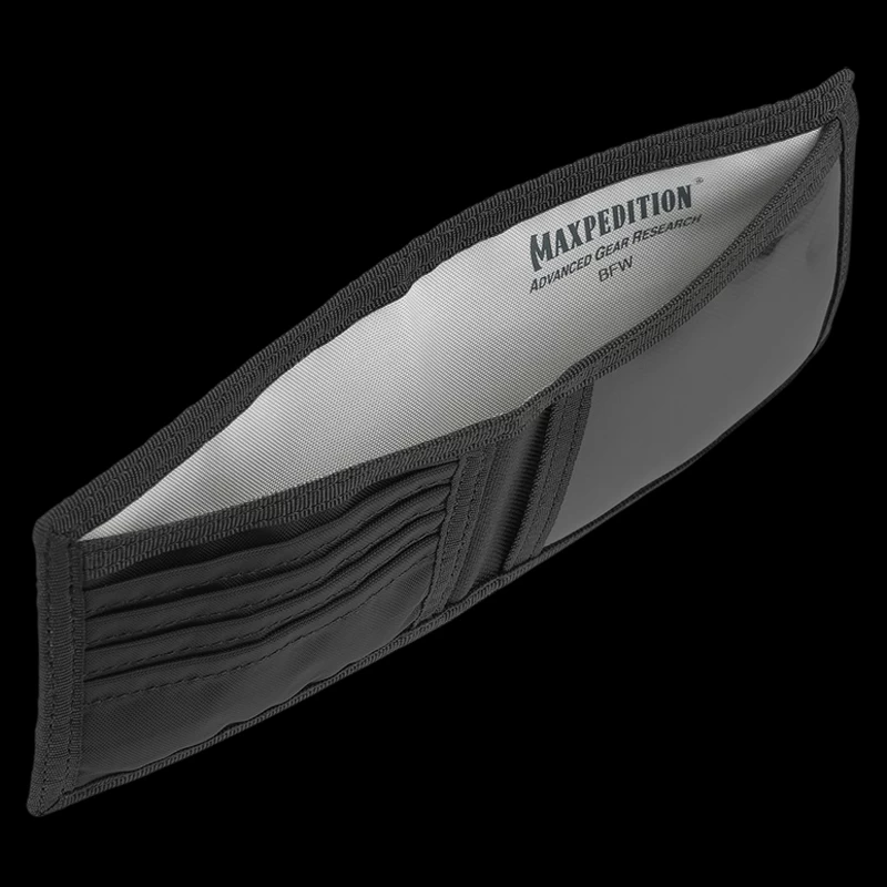 When closed, the wallet displays Maxpedition’s logo, emboridered into the cover, which sits well with the hexagon-pattern fabric.