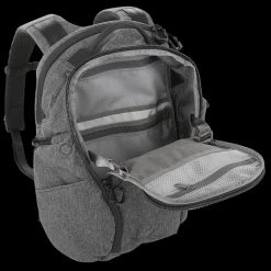 The Maxpedition Entity 23 is an ergonomic pack with padded shoulder straps and quick release buckles. There is a dedicated locking and padded compartment, which can hold a 15” laptop. The main compartment is also lockable, and has drawbridge straps for additional security. The front exterior has tuckable magnetic wings for quick temporary closing of the main compartment. The dual access rear compartment is fully loop-lined, and a double-sided hook Security Lockout Strip is included. Dual side ports are perfect for headphones, charger cables, etc. A rear trolley handle pass-through allows for off body carrying while travelling.