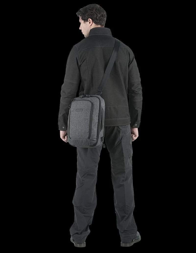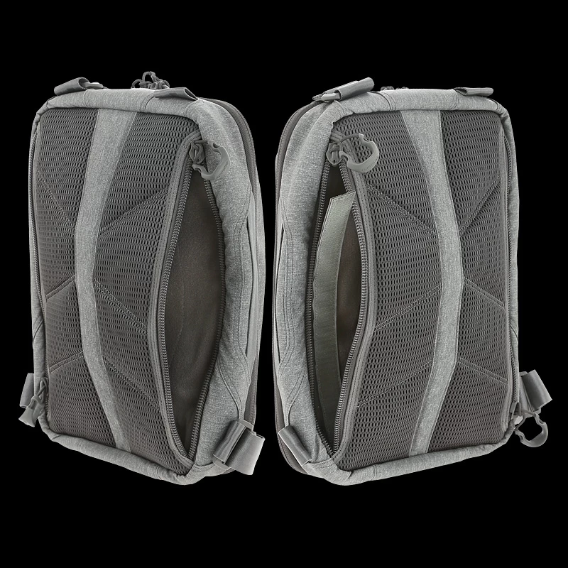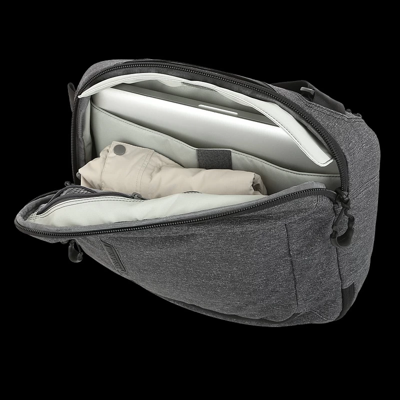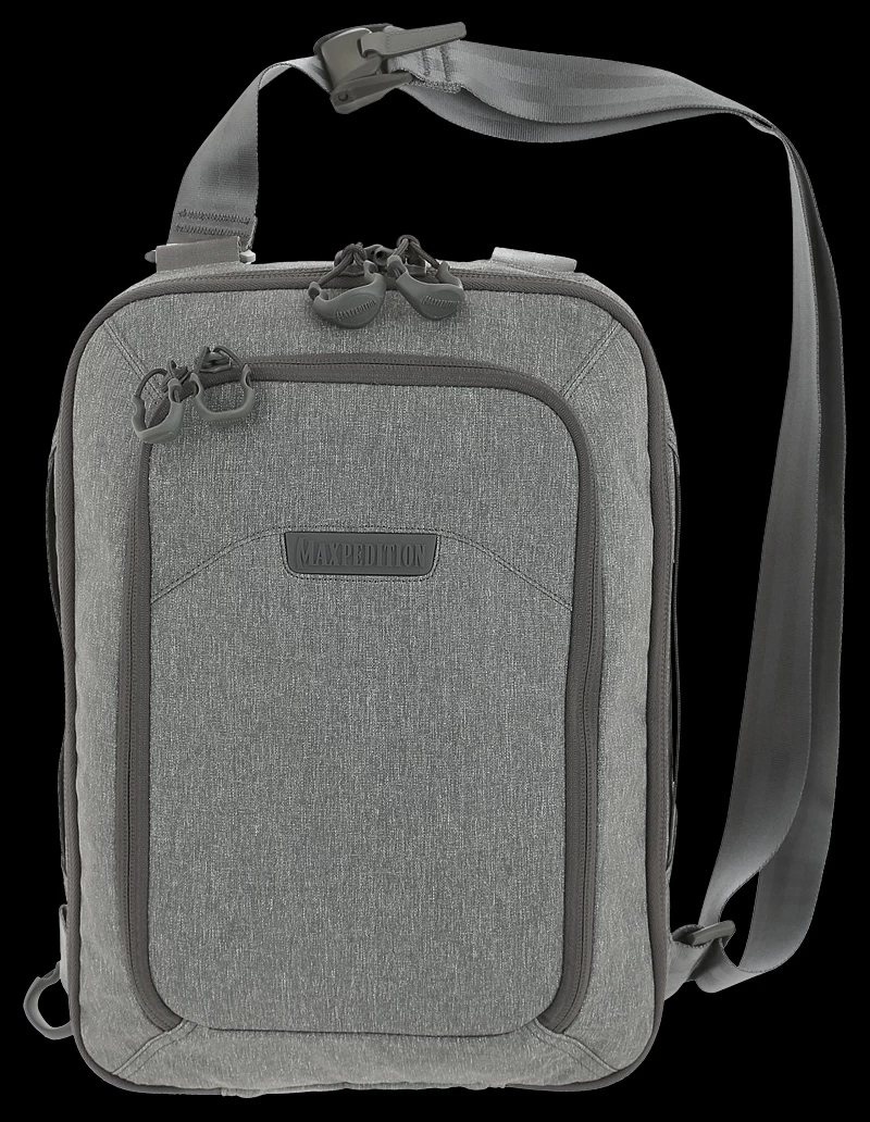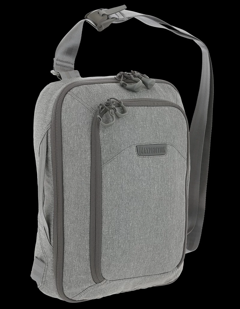 The larger of two available sizes, the Maxpedition Entity Tech Sling bag has a strap that may be positioned by the user for right or left side carry, and may also be easily changed from a sling bag to a shoulder bag. A padded main compartment with lockable zipper sliders contains a padded 13″ laptop/tablet compartment accessible from either side. Additionally, there is also 2-way access to a fully loop-lined rear compartment. A Security Lockout Strip is included for safety.