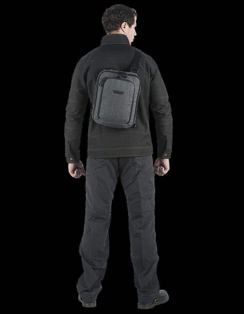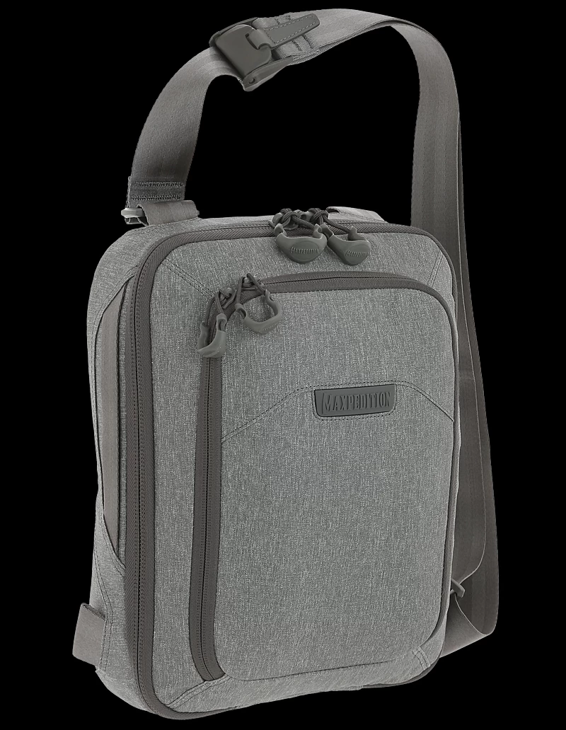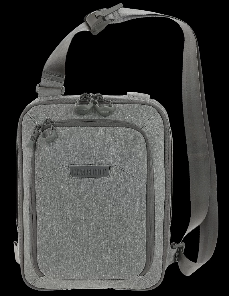 The smaller of two available sizes, the Maxpedition Tech Sling bag (7 litre) has a strap that may be positioned by the user for right or left side carry, and may also be easily changed from a sling bag to a shoulder bag. A padded main compartment with lockable zipper sliders contains a padded 11″ laptop/tablet compartment accessible from either side. Additionally, there is also 2-way access to a fully loop-lined rear compartment. A Security Lockout Strip is included for safety.