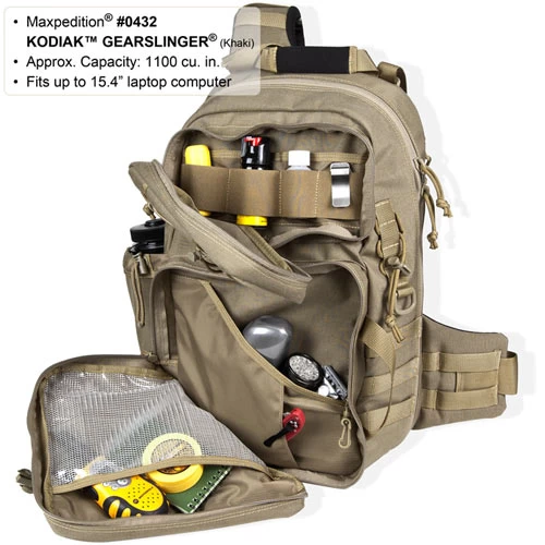 The Maxpedition Kodiak is the granddaddy of Fixed Strap Gearslingers, optimized to meet rugged and urban conditions and offering enhanced space with additional pockets and all the great Gearslinger features. This single shoulder backpack is designed to maximize utility when rotated towards front of body and fits up to 15.4″ laptop computer.It’s hard to believe a bag of this size would be so comfortable, but the Kodiak is designed durably with high carry potential, so it’s always ready for domestic or international travel. If you’re looking for maximum space and utility combined with instant accessibility, this is the everyday carry for you.