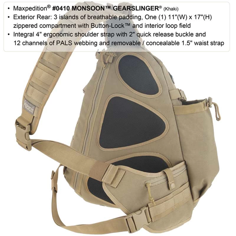 - Integral 4″ ergonomic shoulder strap with 2″ quick release buckle and 5 rows of 2 channel PALS webbing