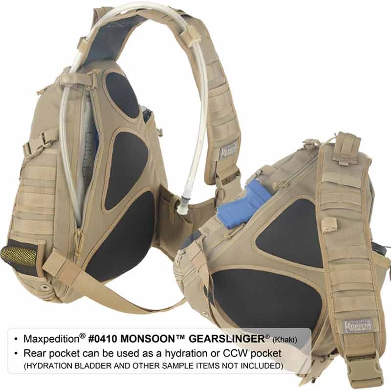 - One (1) 12″(L) x 18″(H) zippered compartment with interior loop field to accommodate 100oz/3L hydration reservoir with tube port or CCW
