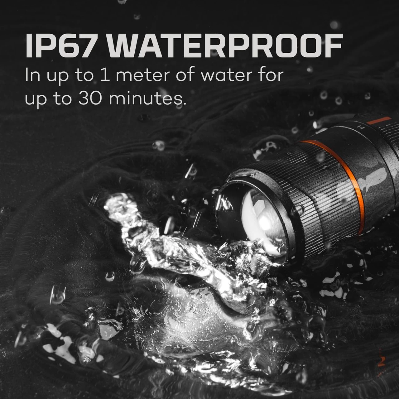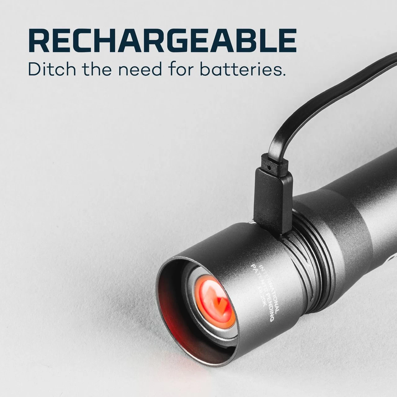 The Nebo Davinci 1,000 lumen rechargeable flashlight is a powerful handheld flashlight with four light modes. The included mode selection dial makes it easy to switch between modes and the powerful LED in this flashlight can light up 299 meters.
