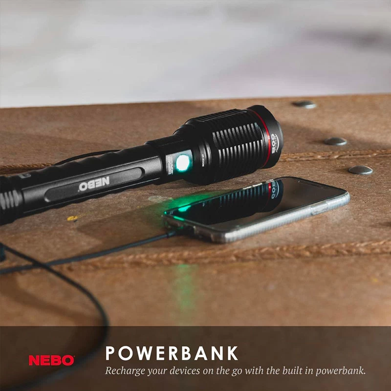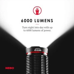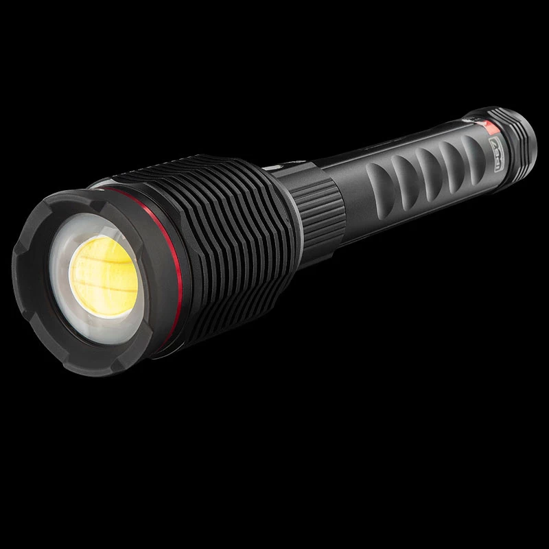 The Nebo REDLINE 6K is a powerful waterproof (IP67), rechargeable, 6,000 lumen flashlight that features 4x adjustable zoom and optimized COB housed inside of an aircraft grade anodized aluminum body with four light modes.