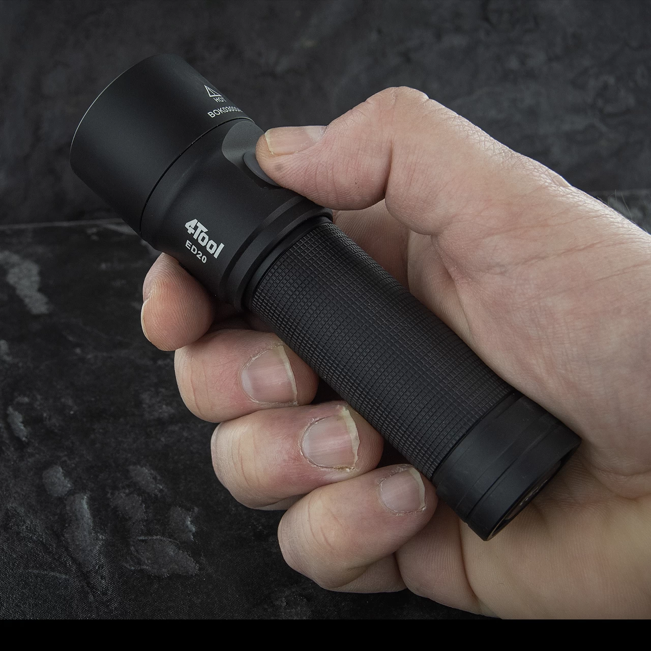 The Nextorch 4-Tool is a hand-held flashlight, housed in a matt finish 6061-T6 aluminium casing with a button conveniently placed for quick thumb operation.