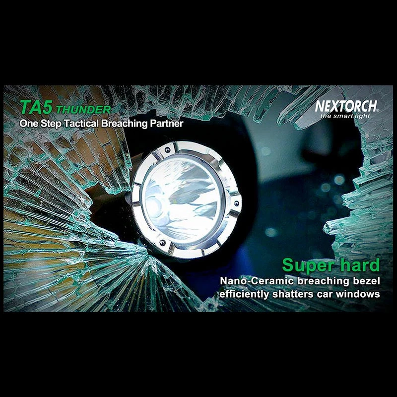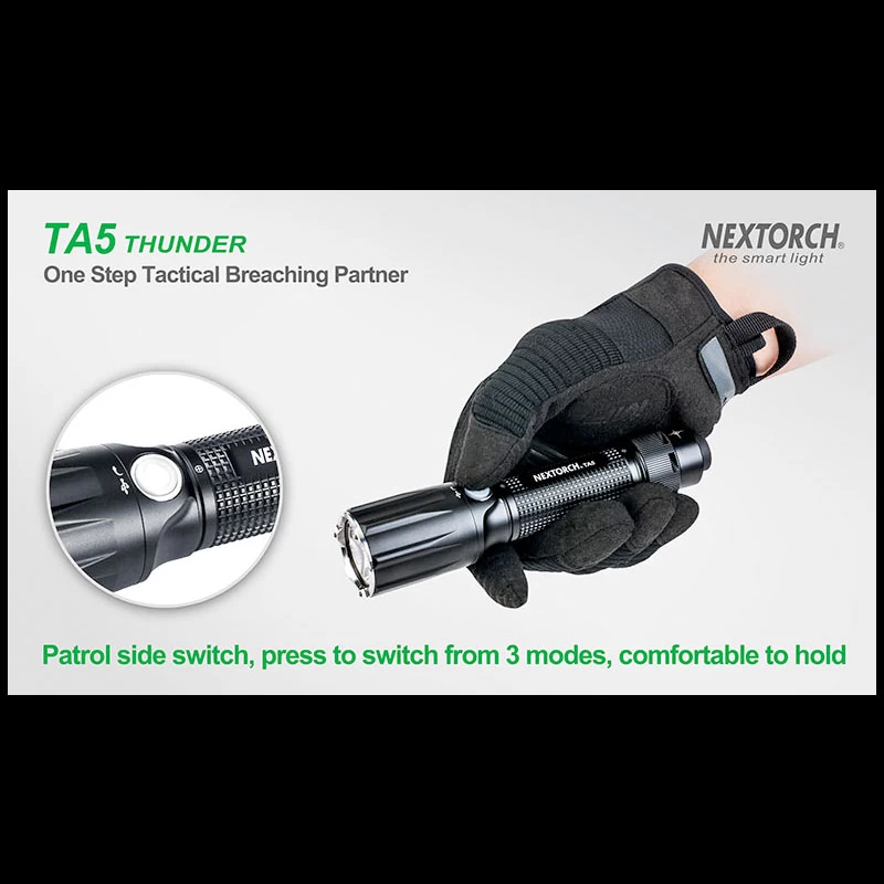 TA5 is a tactical flashlight designed for law enforcement personnel. It got several features that helps gain tactical advantage in operation. The TA5 got an especially hardened Nano-Ceramic embedded bezel, which is hard enough to smash the windows. Utilizes the CREE® XP-L V5 LED to deliver up to 900 lumens, which emits overwhelming wall of light to control with light. It got a Patrol side switch which circles through mode as well as a built-in low battery indicator. Runs with one 18650 battery or 2*CR123A batteries, and comes with USB direct charging port and indicator.