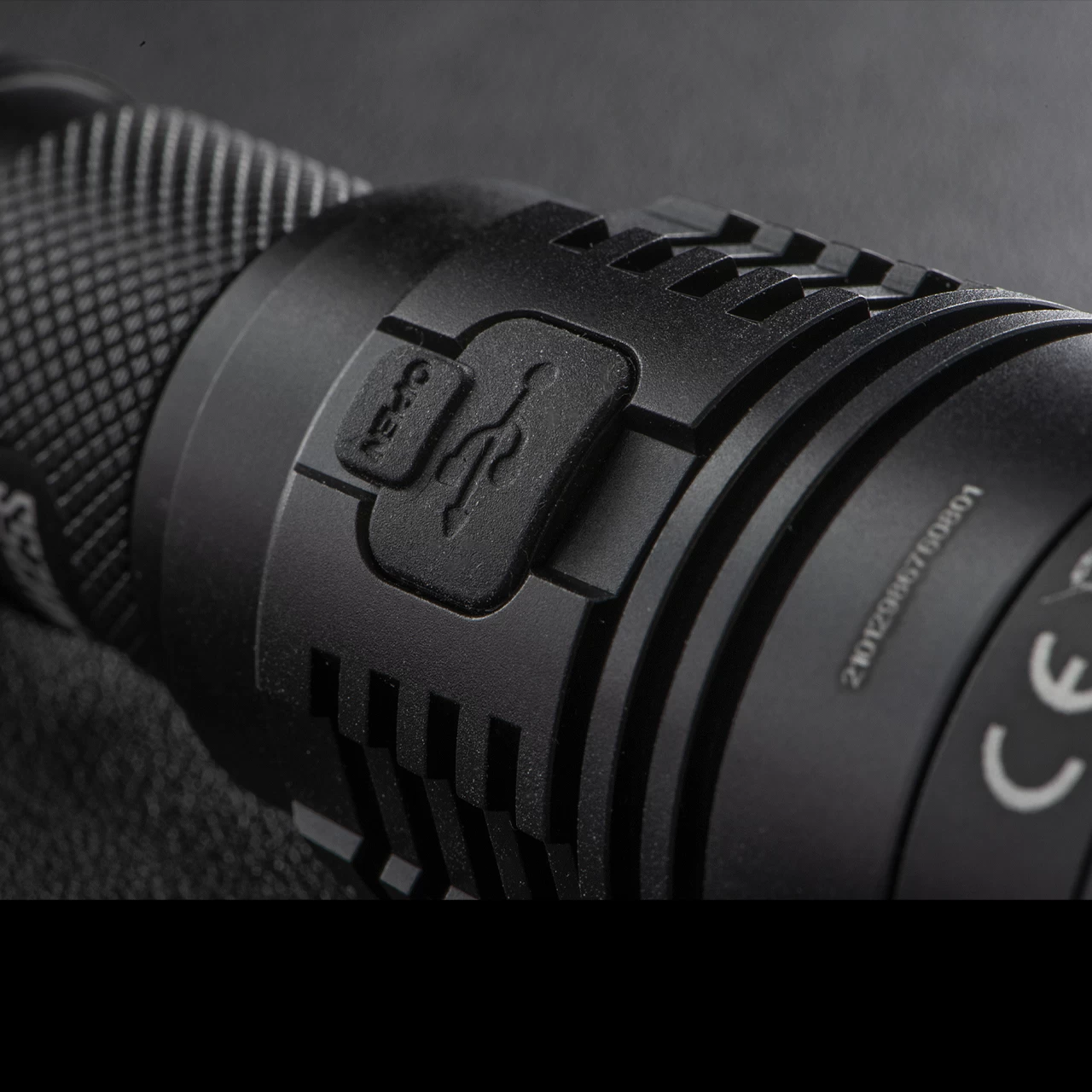 The light is rechargeable via a USB-C port at the head of light with a rubber cover to provide resistance to water, dust and impact. Please note, the MH25S can only be recharged when using a li-ion 21700 or 18650 battery.