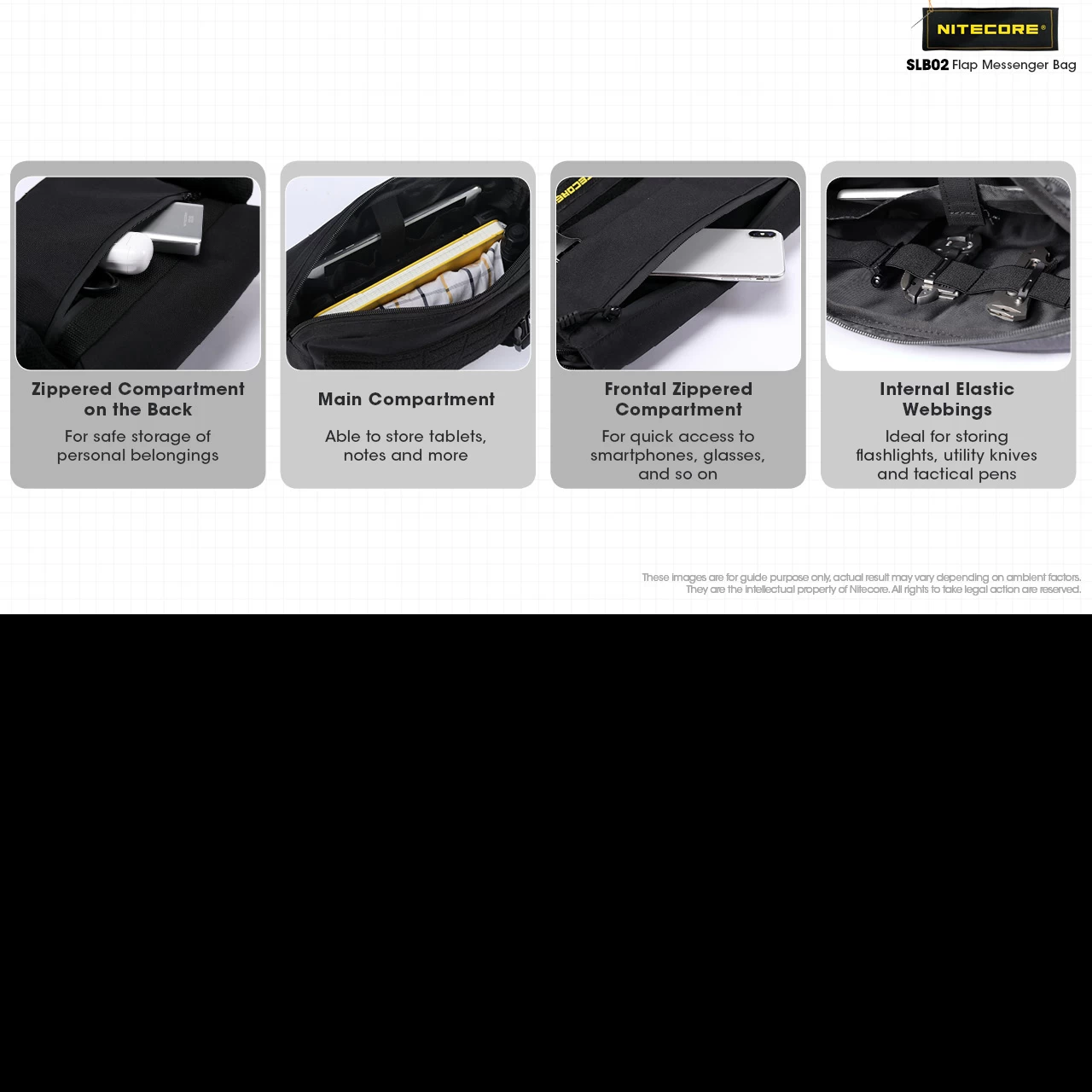 The Nitecore SLB02 messenger bag is a lightweight 2L pack that can safely store and carry your essential gear. It is made from 500D polyester fabric with a water resistant coating so you can use it in all weathers.