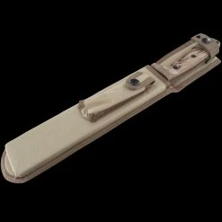 The 23cm blade is long enough to get stuck in to the desest undergrowth, but still handy enough for the finer work when building your fire. The blade is forged from carbon steel, known for its great hardness and the ability to be honed blade razor sharp.