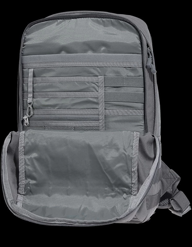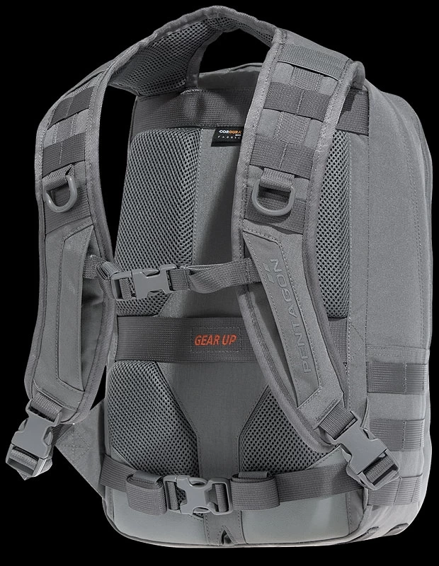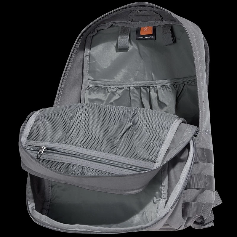 The Pentagon Leon 18hr backpack is the perfect day pack for all the kit you’ll need with out breaking the bank. The main compartment is for all your general gear with an interior mesh pocket and a hydration bladder pocket with hanging parts. The administration compartment features a number of administrative and utility pockets including a tablet pocket padded with EVA and lined with fine tricot. The anatomic shoulder straps with slider adjustable chest strap will keep the pack secure and close to your person during strenuous activity. The back is padded with mesh with anti-slip patches and air ventilation chanels for comfort. The front side is equipped with a generous amount of Molle straps and extra tension straps for apparel and accessories which is adjustable with Hook n loop straps.