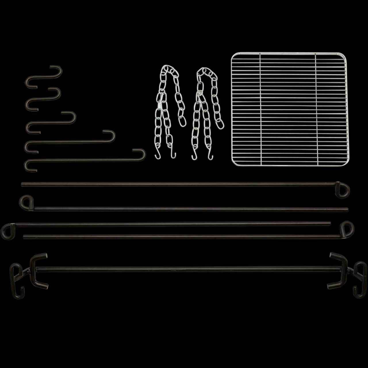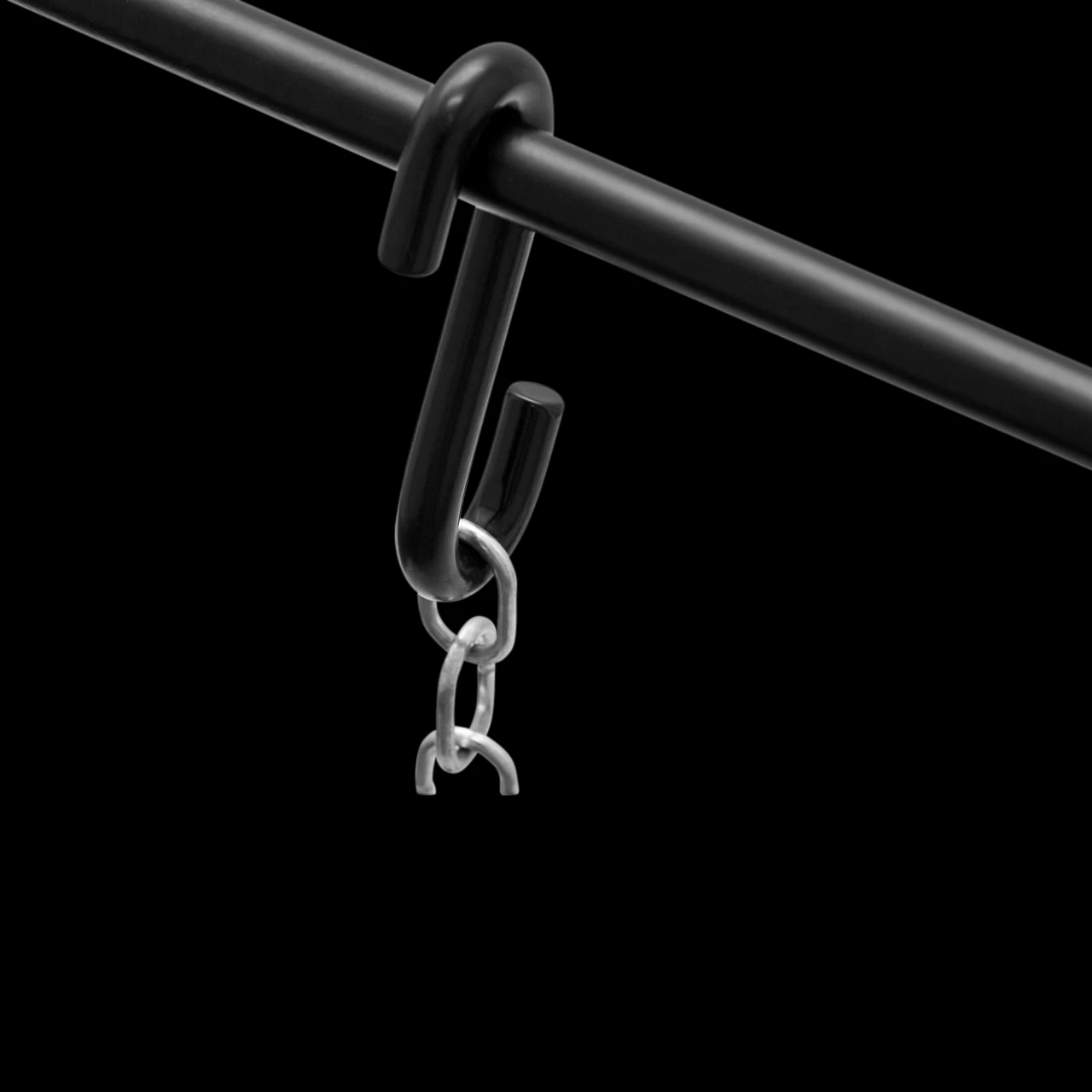 With its eyelet construction, the Petromax Fire Bridge is stable on four feet and can be set up in no time. The Fire Bridge has a 115cm crossbar, a grilling grate with height-adjustable chain suspension as well as three hooks of different length to suspend cookware. The long crossbar enables you to cook over one or more fires.