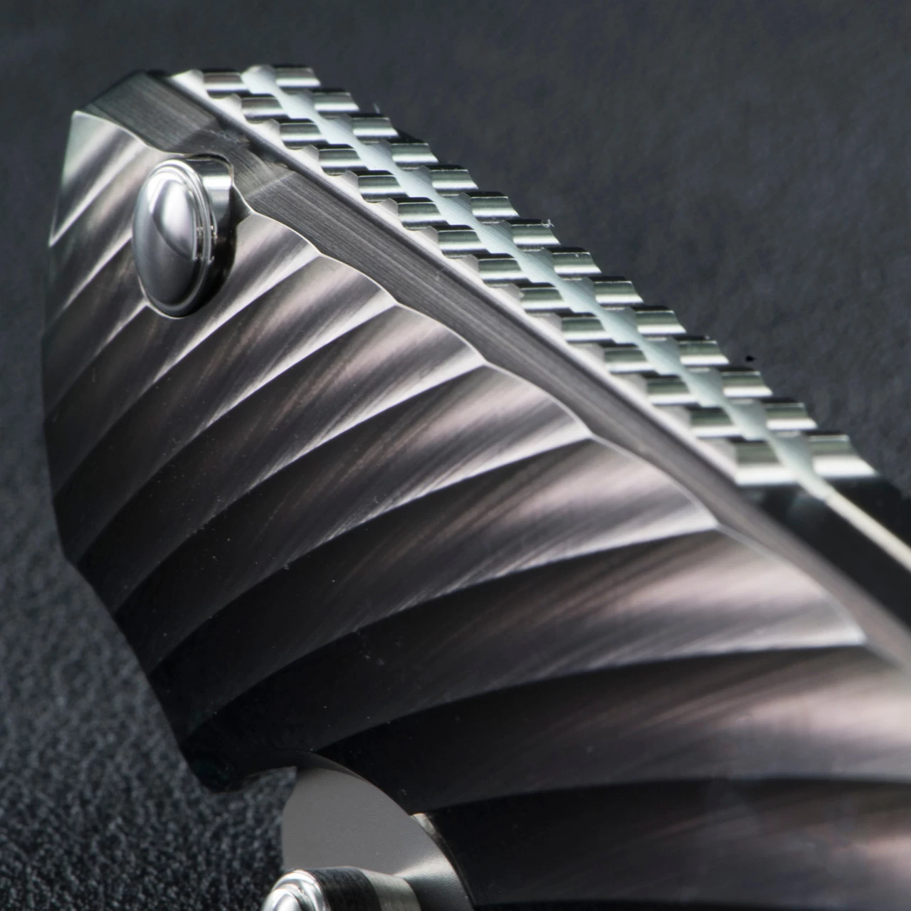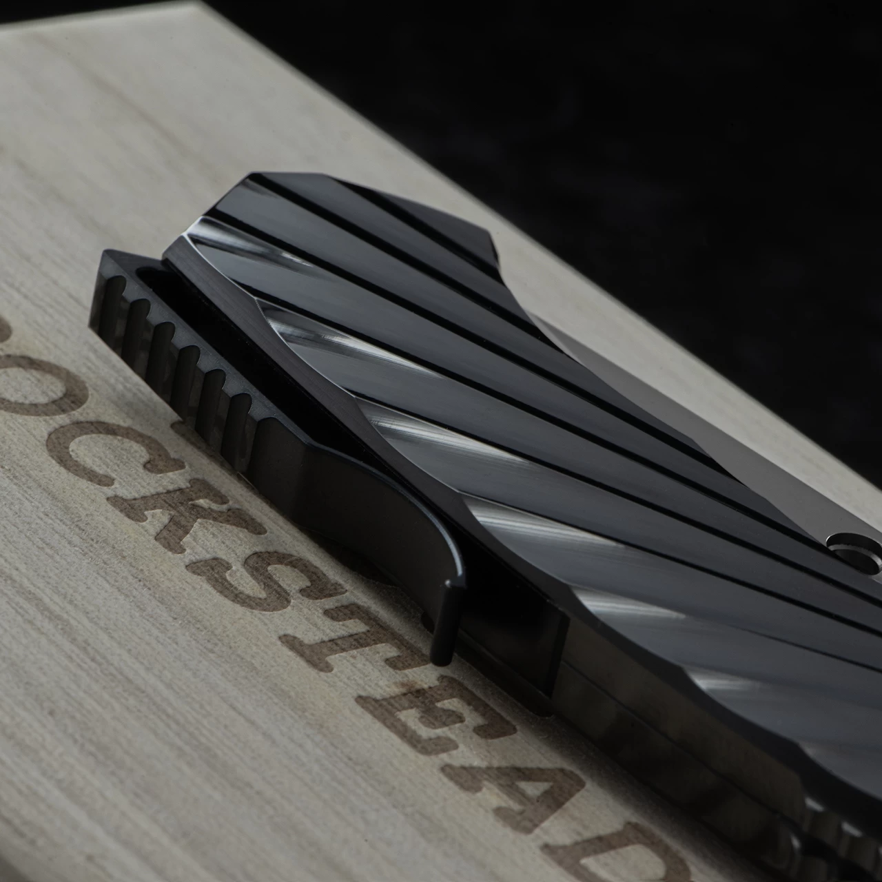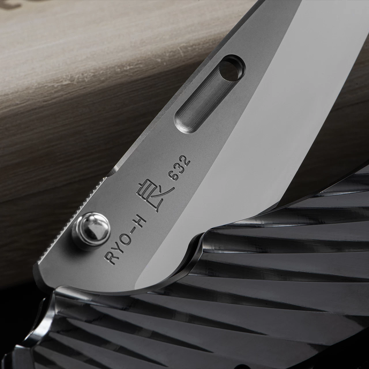 The most unusual feature of the Rockstead Ryo H ZDP however, is the concealed pocket clip. This retractable clip sits smoothly along the back of the DLC coated titanium handle scales eliminating the uncomfortable feeling that you get with a standard bolt on pocket clip. There is also a discreet lanyard hole tucked almost invisibly into the handle providing functionality without detracting from the aesthetics of the waved handle design.