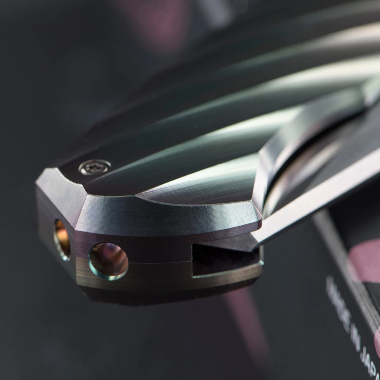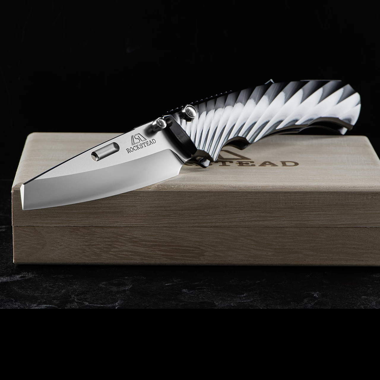 The Higonokami style ZDP189 blade is finished with a convex grind and as with all Rockstead knives the quality of steel is like no other, providing un-paralleled edge retention that will only need sharpening under exceptional circumstances. The stunning mirror-polished blade is locked using a smooth button lock feature.