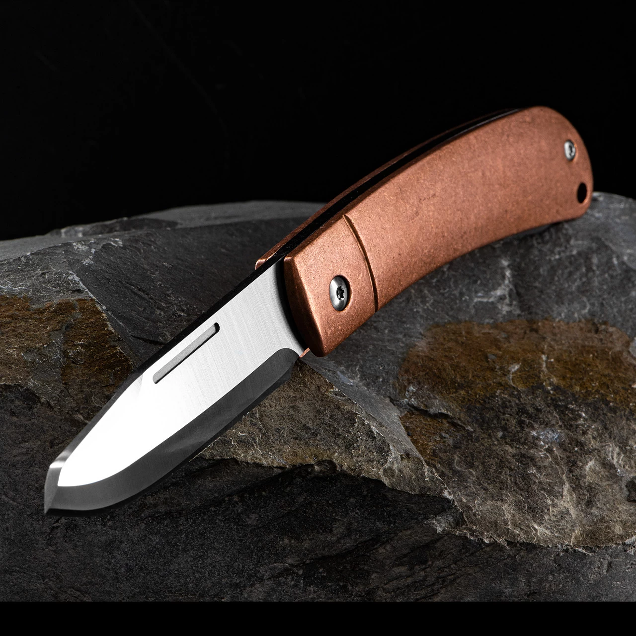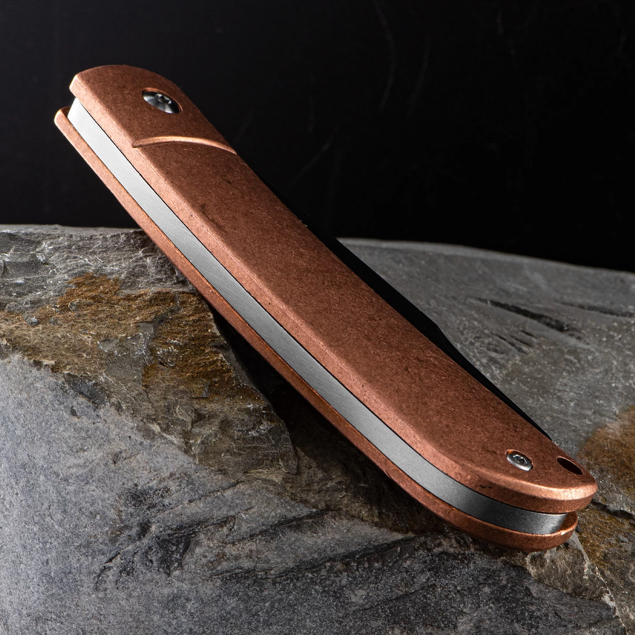 Weighing in at 150 grams, the Rough Rider APTA Folder Copper has a real presence in your pocket and your hand. The blade is made from VG10 stainless steel and ultra sharp out-of-the-box. A lanyard hole in the handle will allow you to make the knife your own.