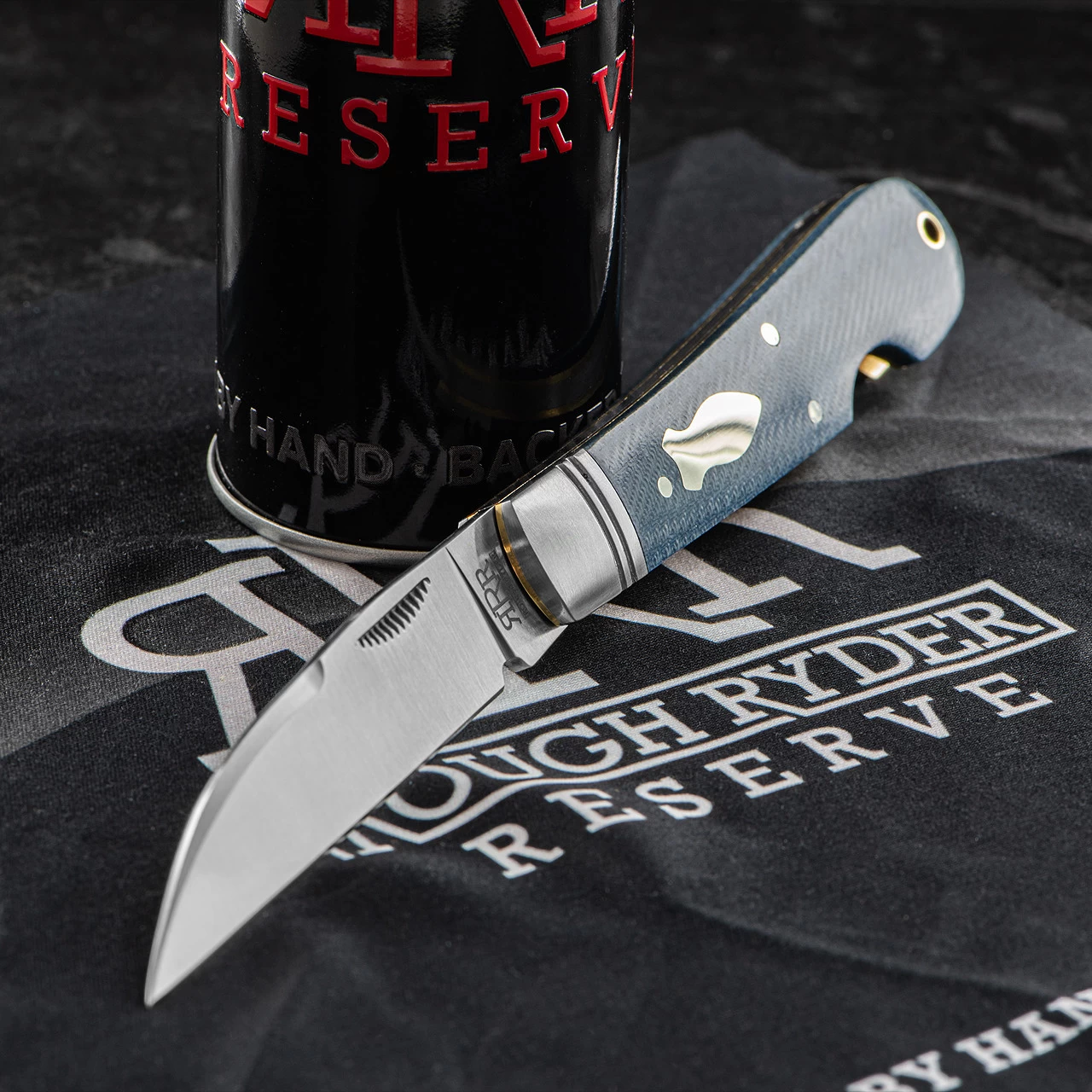 The Rough Ryder Reserve Sway Back Denim Micarta features a satin finish D2 steel wharncliffe blade with match strike pulls. This is quality folder with a precision mechanism making the snap into the open and closed position.