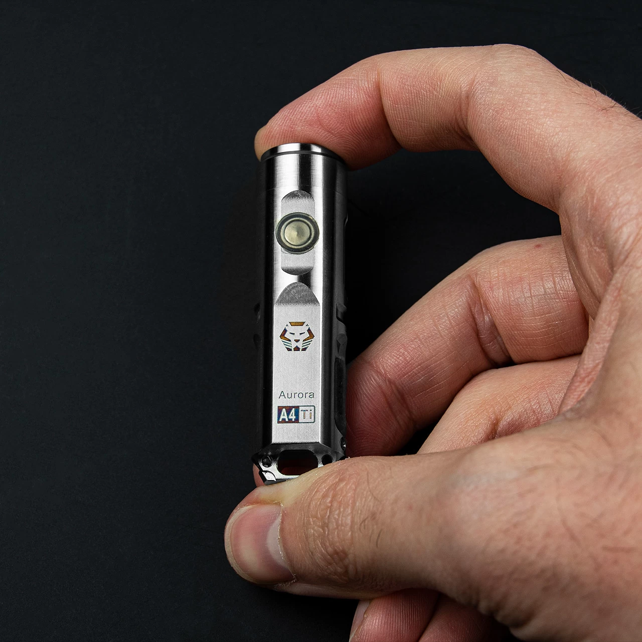 The Rovyvon A4 G3 Titanium is precision crafted from polished titanium. It is a very pleasing object to use and to look at! This version has a SST-20 6500K cool white LED for piercing white light and an impressive lumen output of 650 for such a small light.