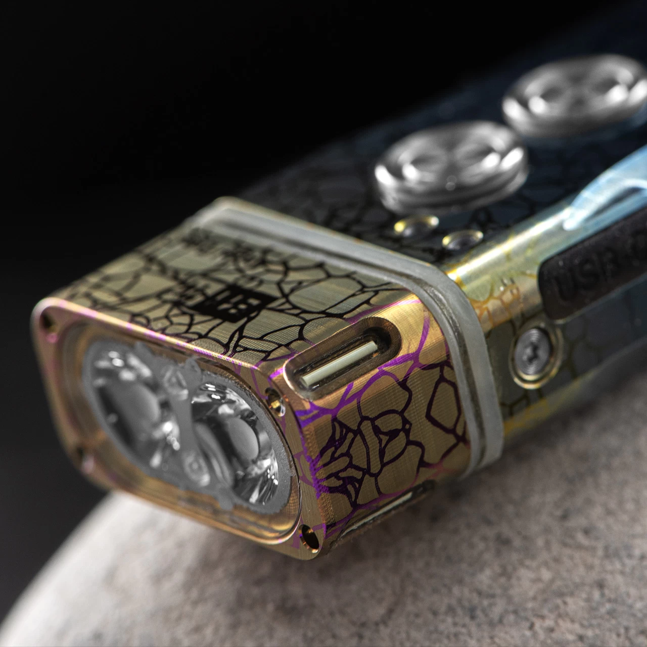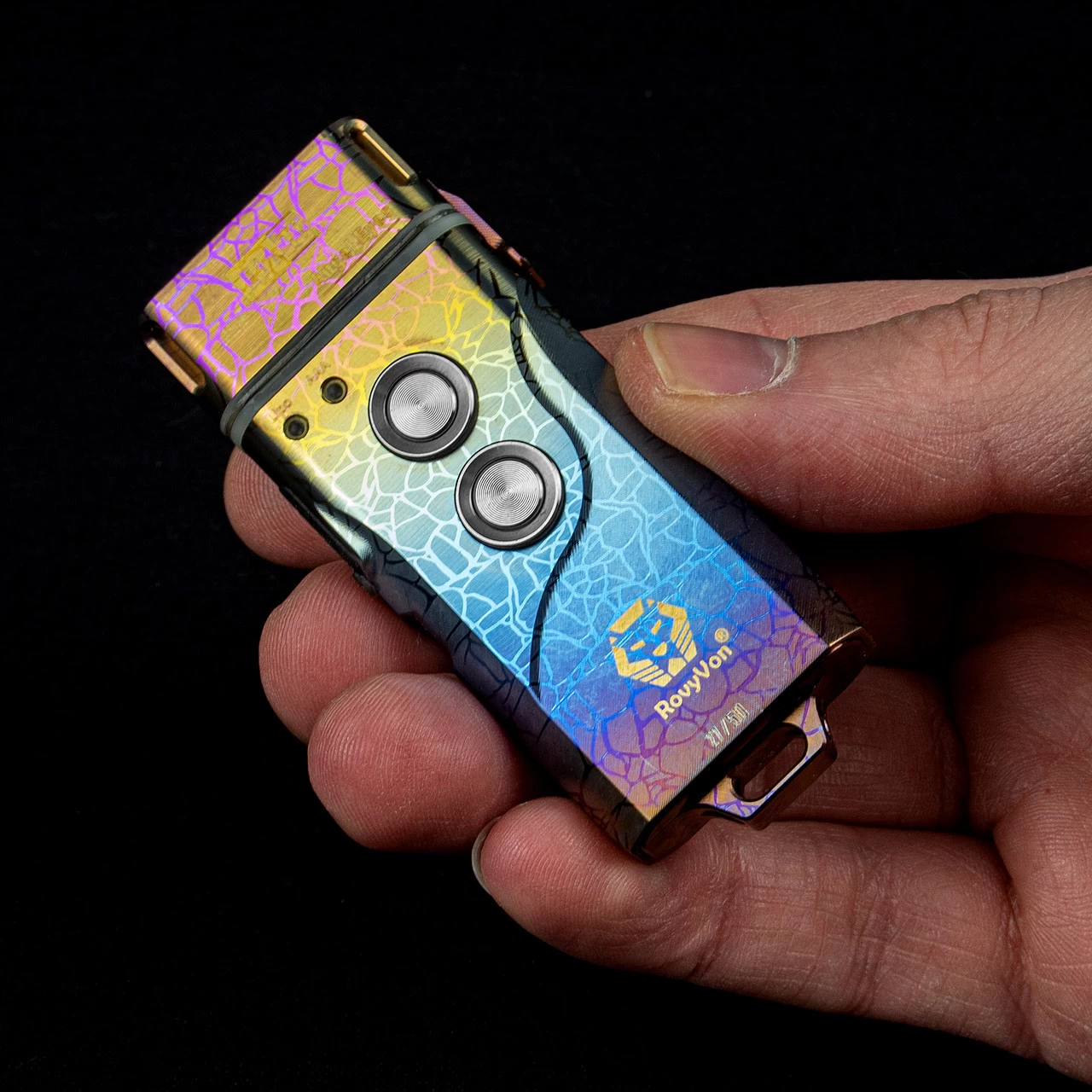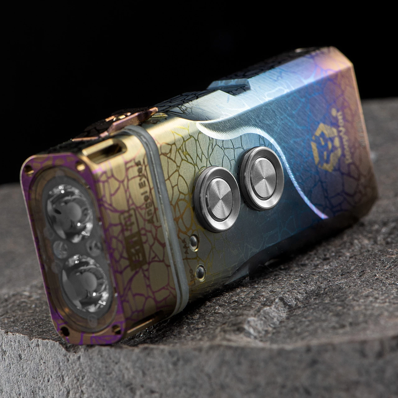 Rovyvon E11 Titanium “Dawn in the Dark” Limited Edition is a high performing pocket flashlight with an extremely eye-catching surface decor. This uniquely stunning lighting tool will turn heads and do a superb job at the same time.