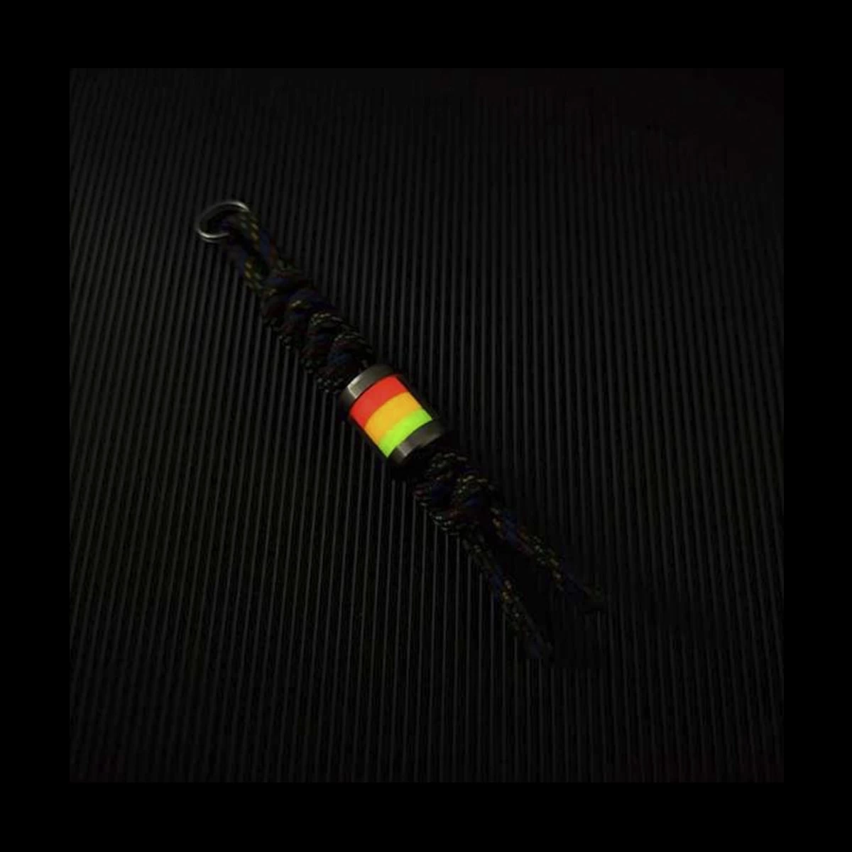 The RovyVon Ti Firefly keyring features glow in the dark beads in a choice of colours; orange – blue – orange or red – orange – yellow.