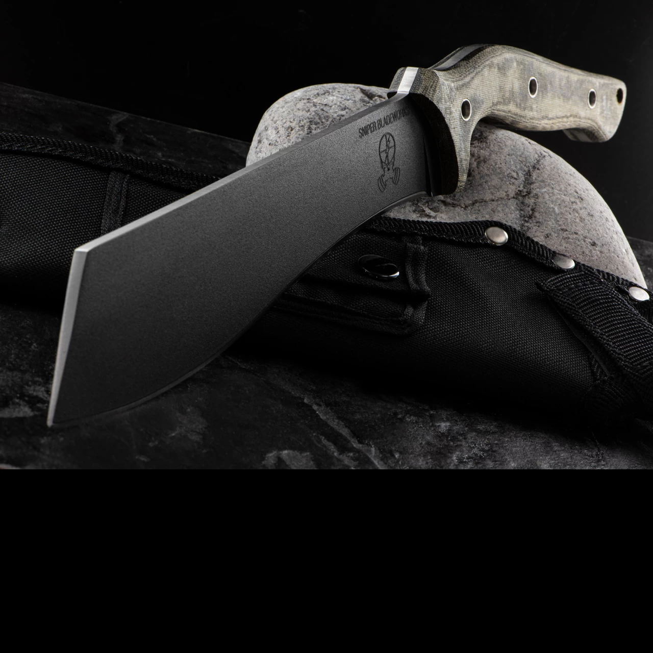 The Sniper Bladeworks SOF Chopper is the baby of Lance Abernathy and Sniper Bladeworks. Its singular style and big build are on full display. The Chopper is a substantial tool perfectly suited to hacking through overgrown areas. For the camper, shelter builder or gardener it will prove invaluable.