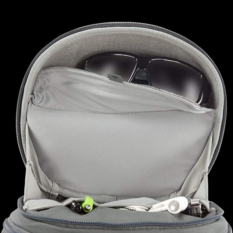 - Impact-resistant top pocket with internal organization to safely secure and stow valuables such as glasses, camera, binoculars, and phone.