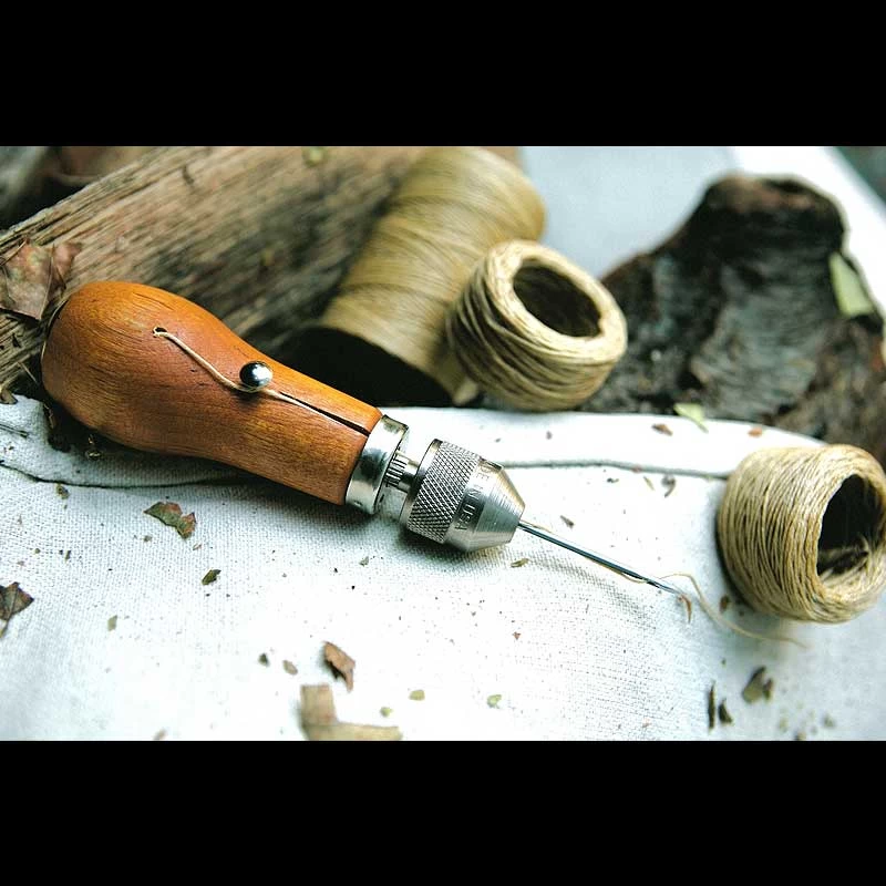 The Basic Awl Kit includes the Speedy Stitcher Sewing Awl, one straight and one curved needle as well as a built-in bobbin wound with 12.8m (14-yards) of waxed thread and use instructions.