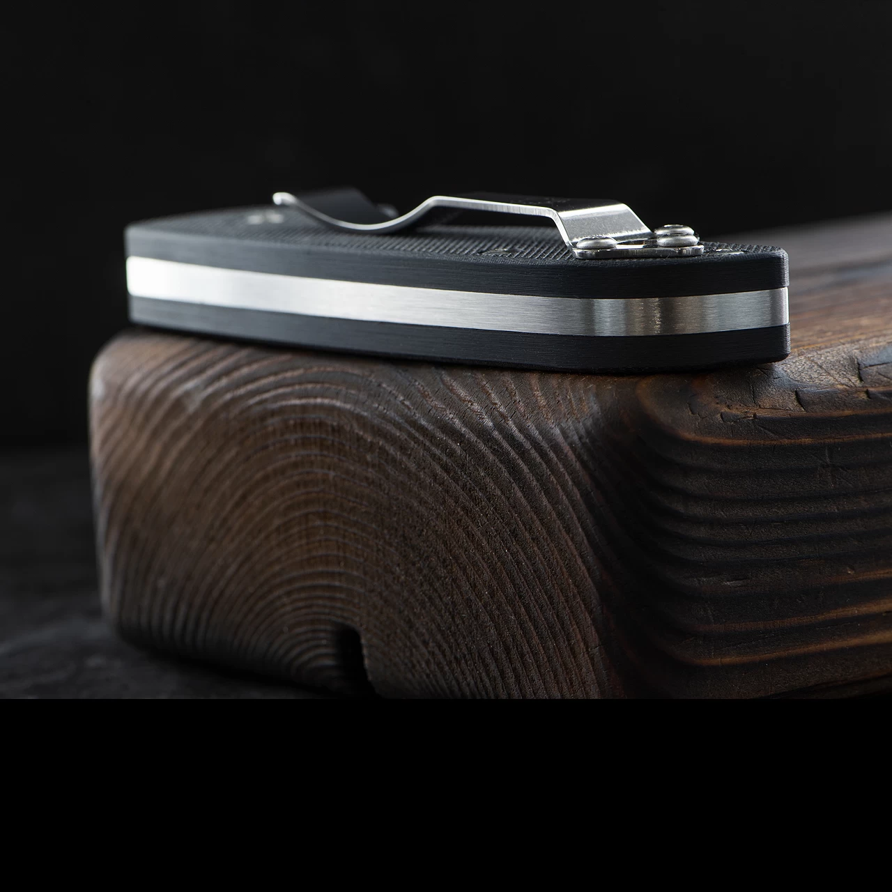 An enhanced version of a traditional slipjoint, this mechanism uses spring pressure to hold the knife’s full-flat-ground CPM S30V blade open, but does not lock it. Peel-ply-textured G-10 scales ensure a non-slip grip and a broad-based four-position clip offers ambidextrous tip-up or tip-down carry.