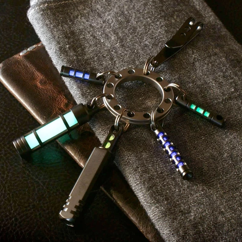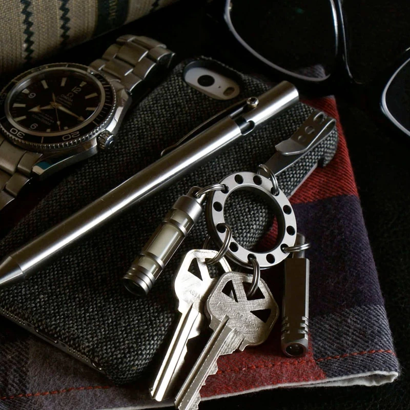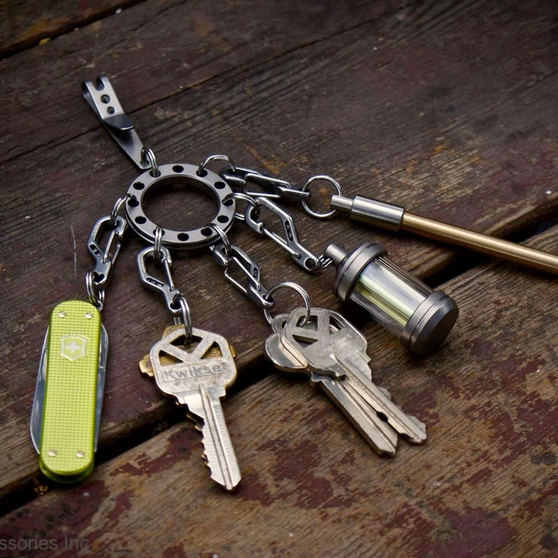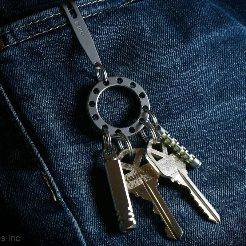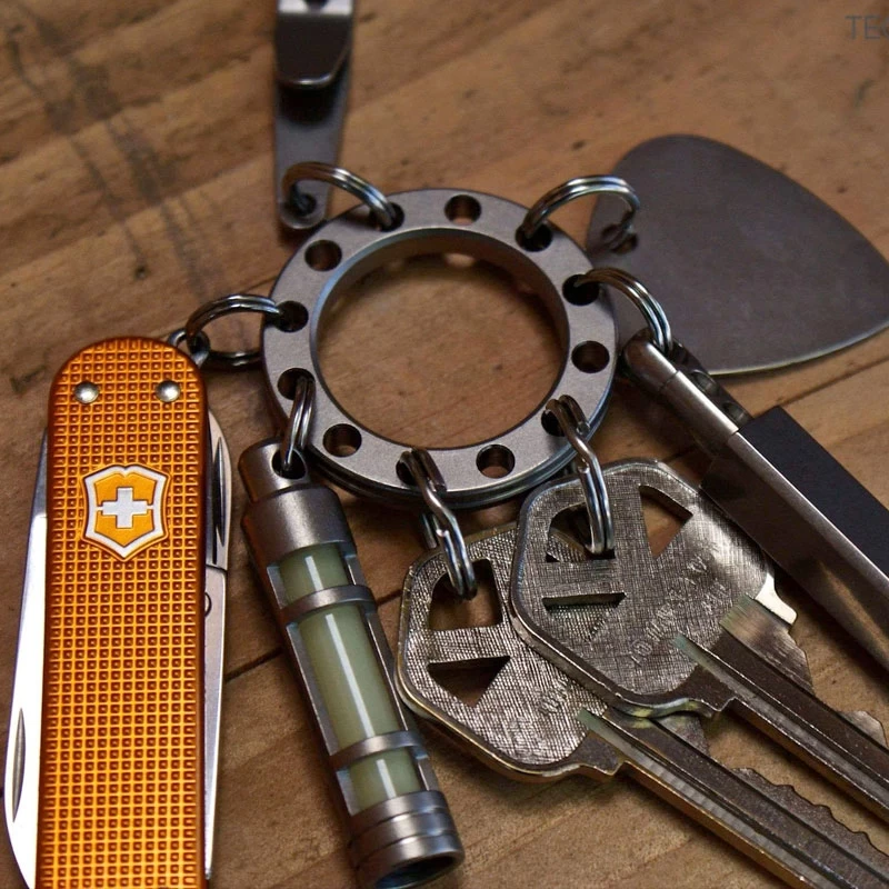 The big sister of Tec Accessories’ original Universal Flex Organiser, the UFO-MS is the Mothership of the series. This titanium ring is larger in diameter and has four additional holes (for a total of 12) than the original UFO, perfect for attaching your keys and favourite gear. This not only gives you more attachment points, but also has the added benefit of providing wider spacing options for items that are larger in size. When hanging from the TEC P-7 Suspension Clip, the UFO-MS creates a flat profile for your keychain rather than having everything gather in a large bunch.